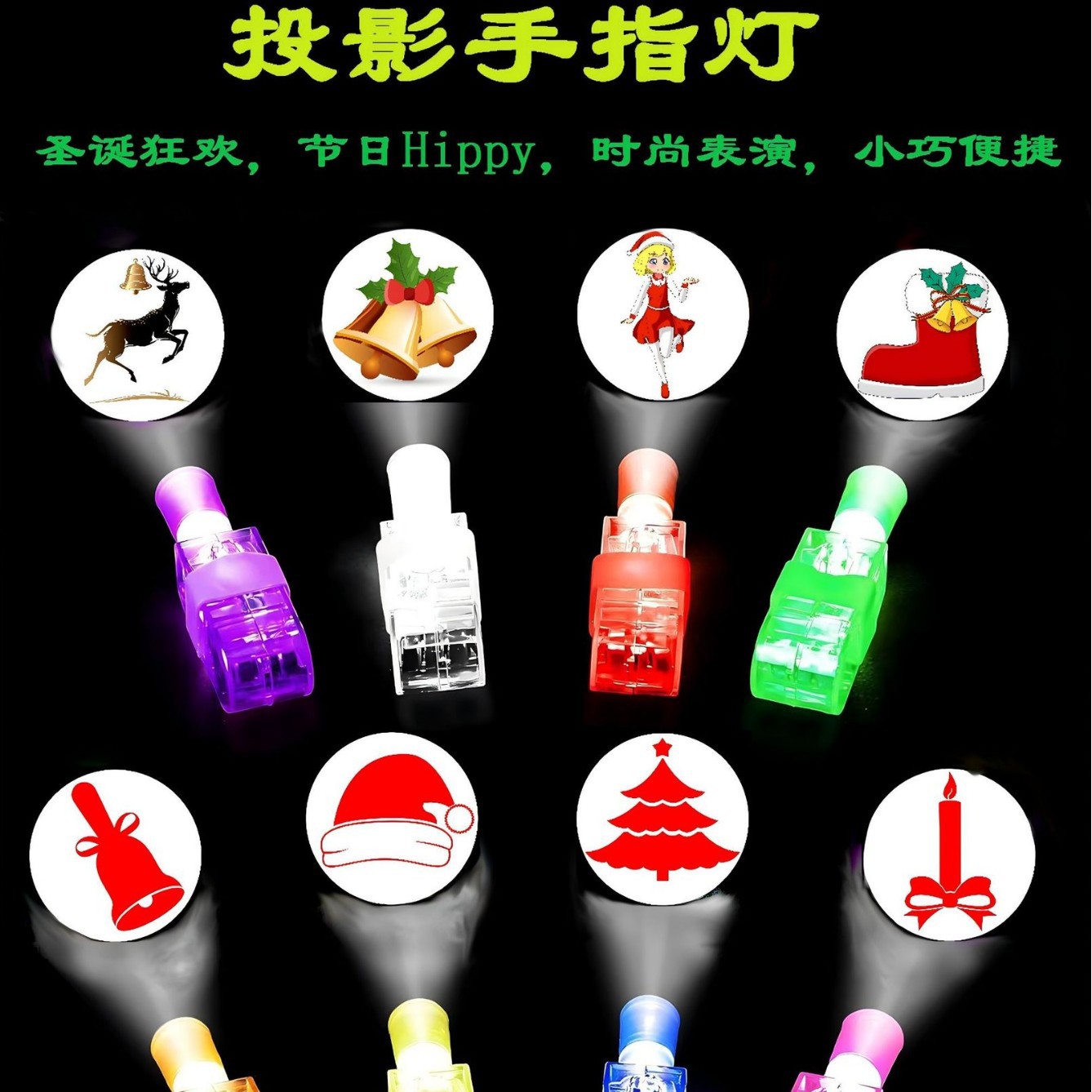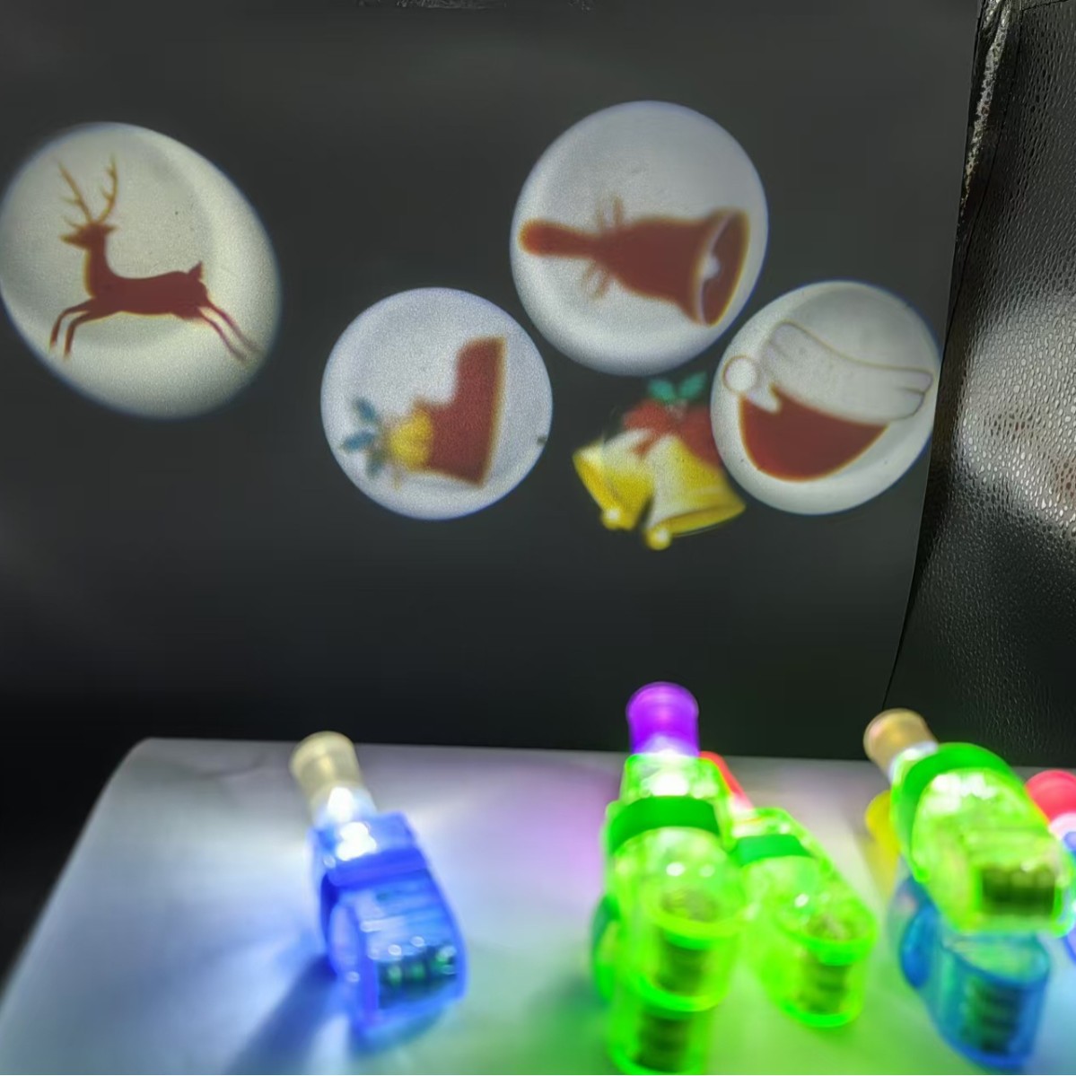 Рождественский проекционный фонарик-игрушка: светодиодный фонарик для пальца в виде ёлки, снеговика, лося, мигающий указатель