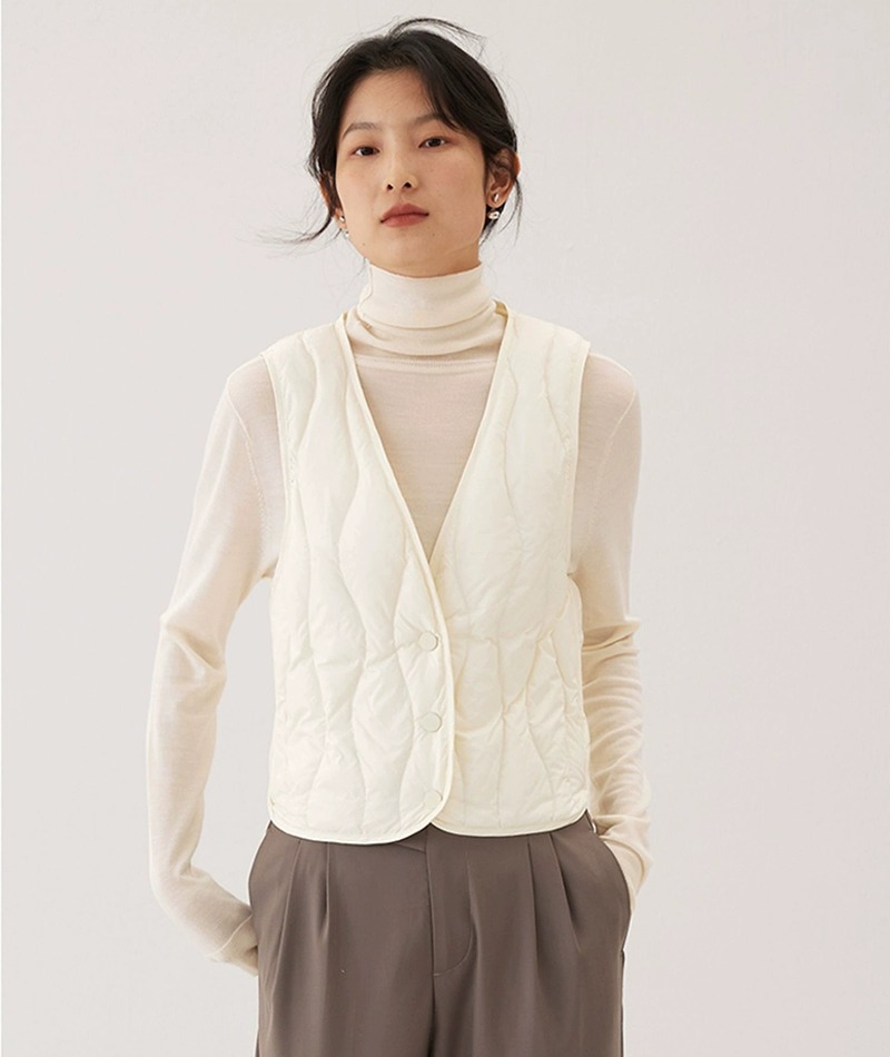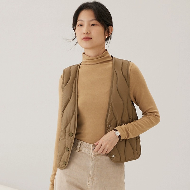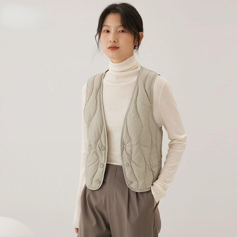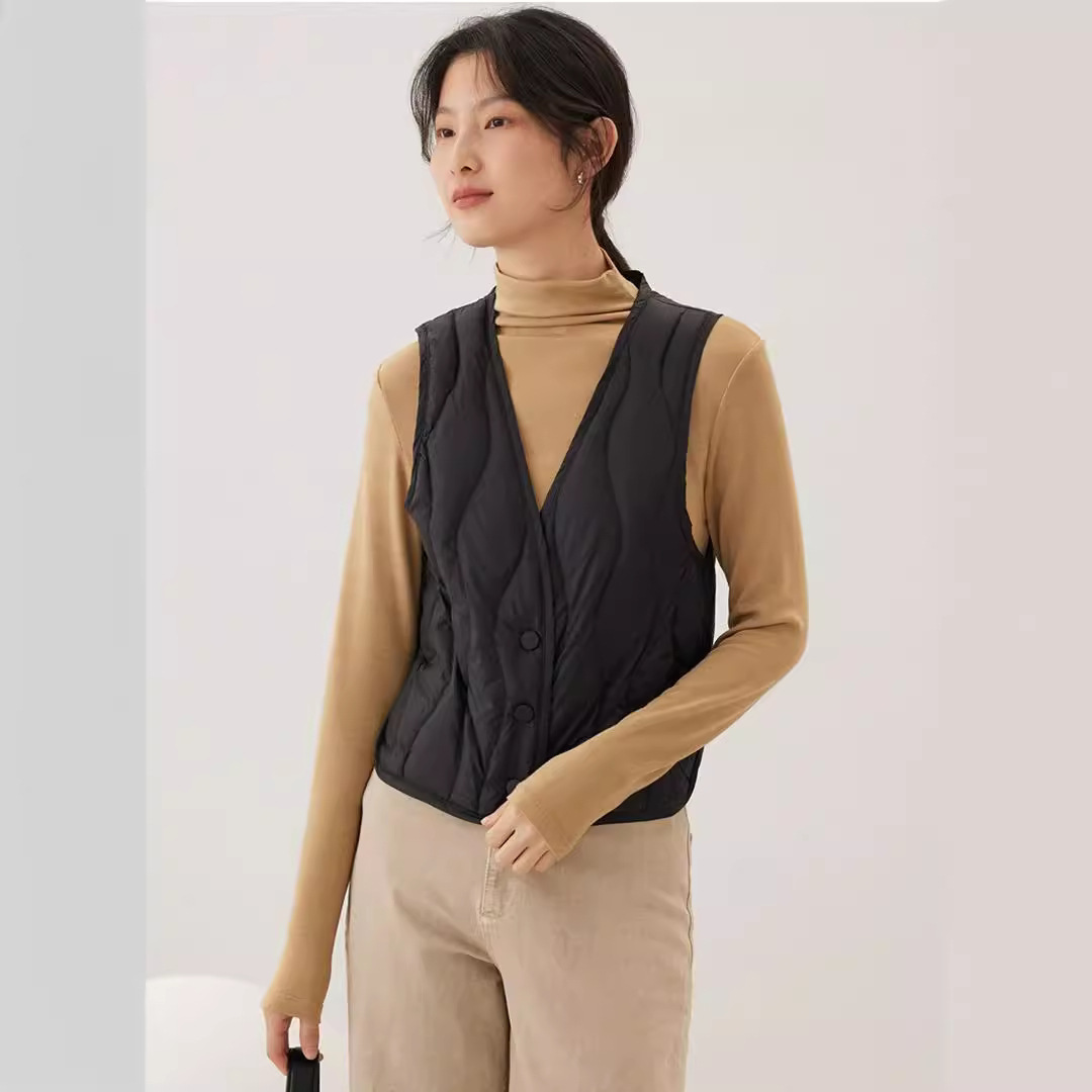 Пуховик жилет женский 2024 новый внутренний жилет V-образный вырез дно тонкое и легкое внутреннее плечо