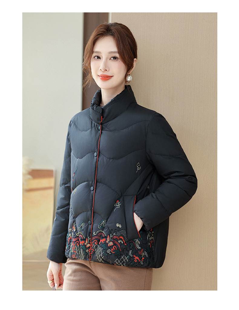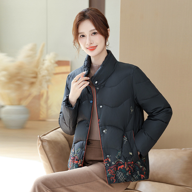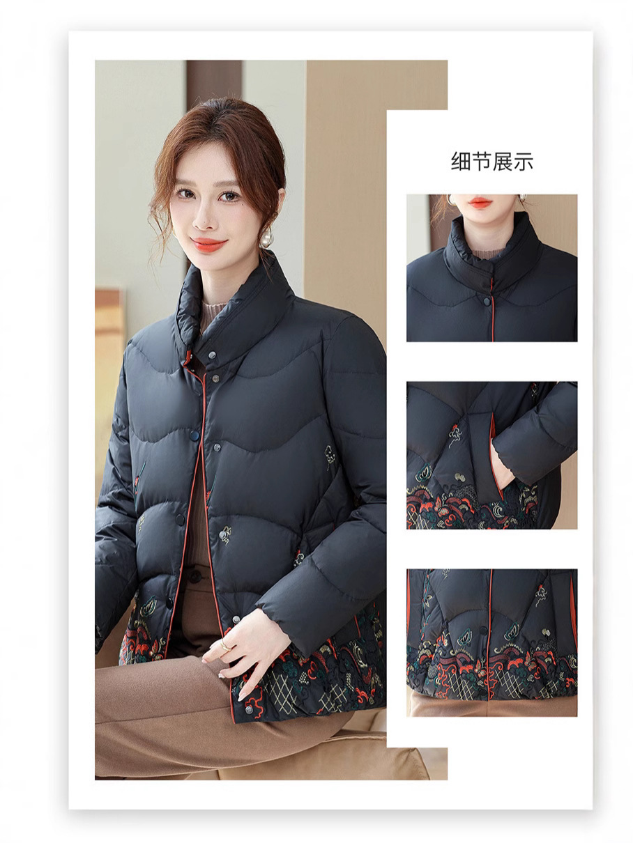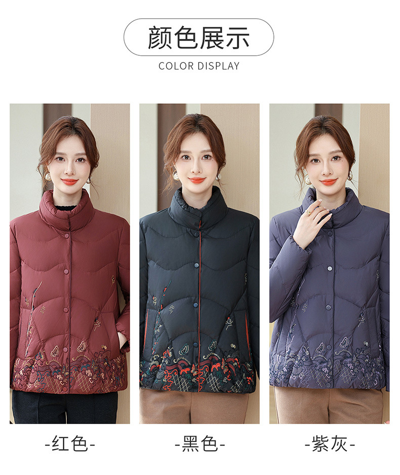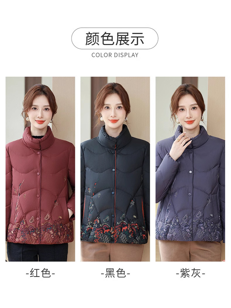 2024 Новая мама пуховик куртка топ короткий средний и пожилой пиджак хлопчатобумажная вышивка иностранная мама одежда осень-зима