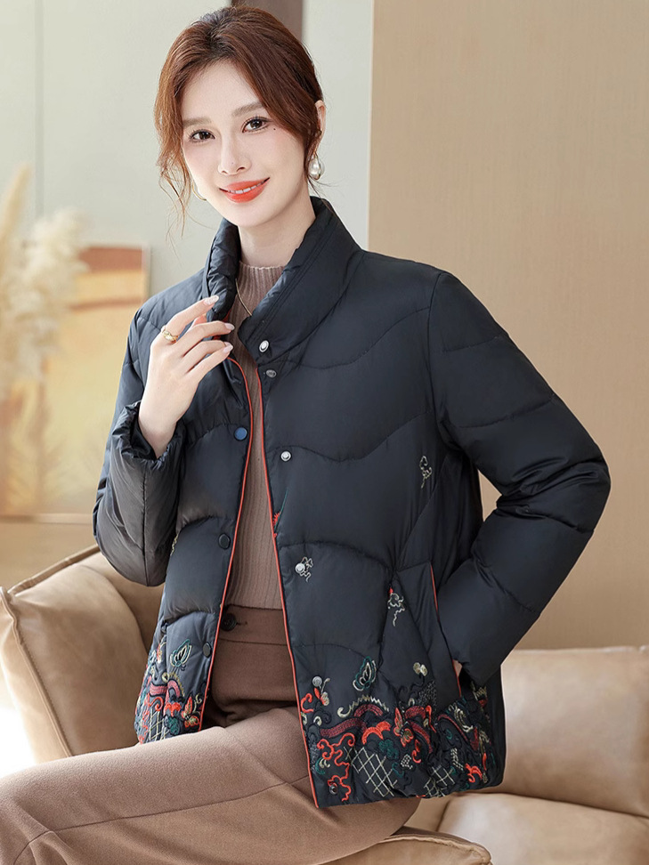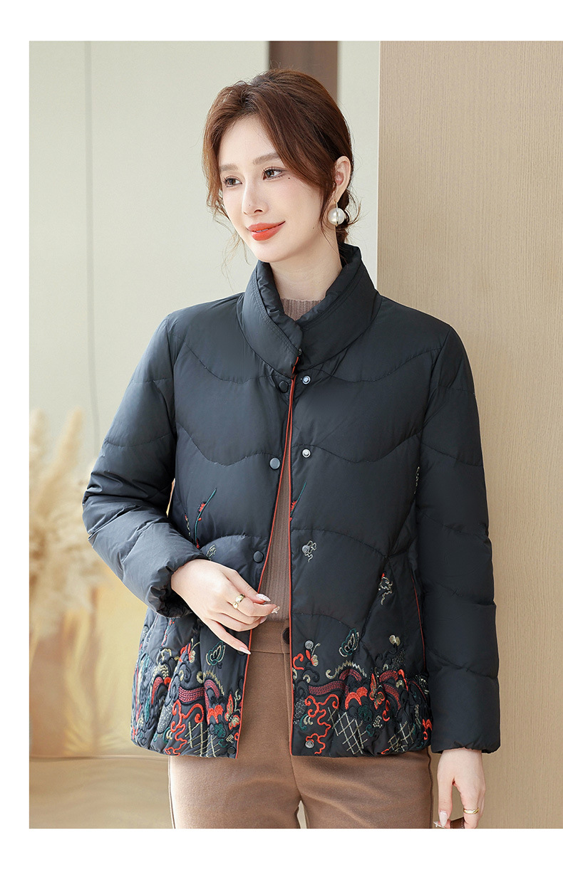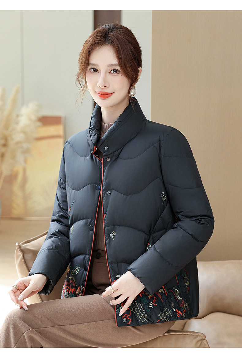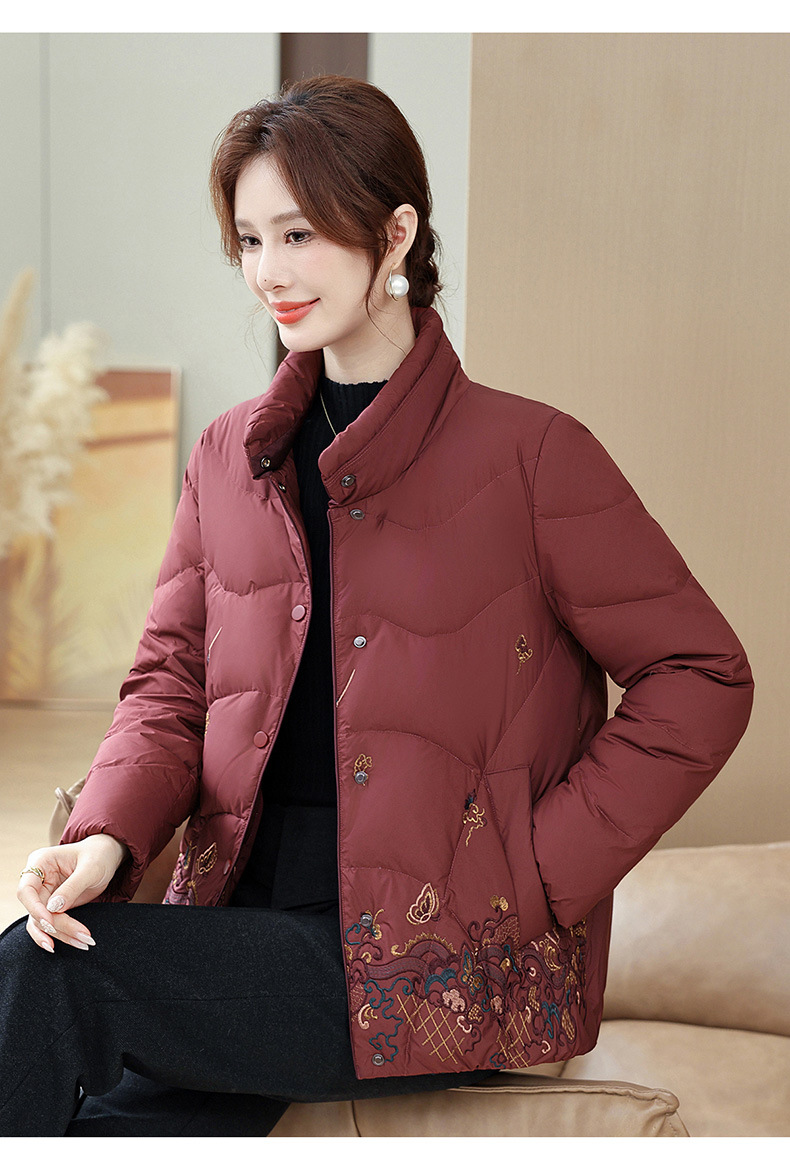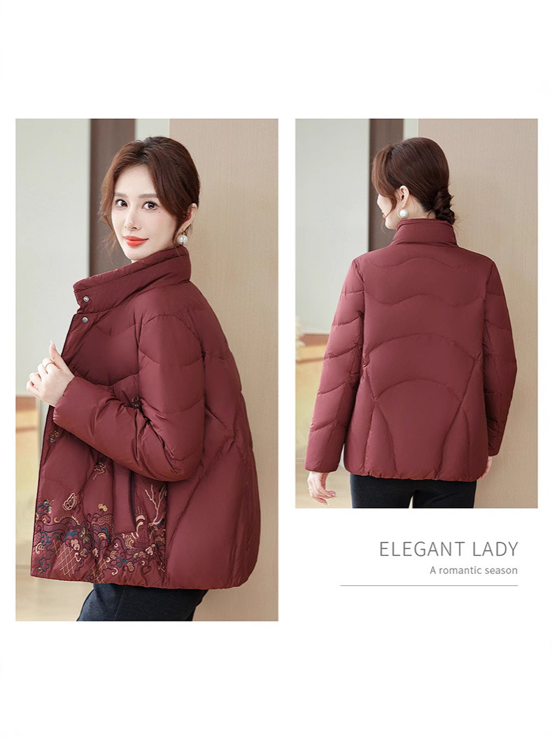 2024 Новая мама пуховик куртка топ короткий средний и пожилой пиджак хлопчатобумажная вышивка иностранная мама одежда осень-зима