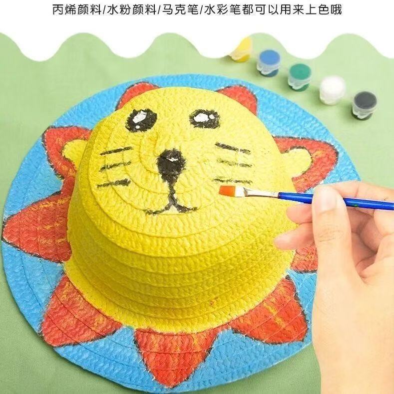 Пустая соломенная шляпа детская роспись шапка ручной работы diy рисование граффити детский сад изобразительное искусство настенная декоративная шапка