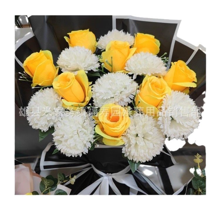 Кровавый букет искусственных цветов, искусственные цветы, букет хризантем на фестивале Цинмин, черный горшок, хрустальный гроб, цветок в гробу, цифровой венок