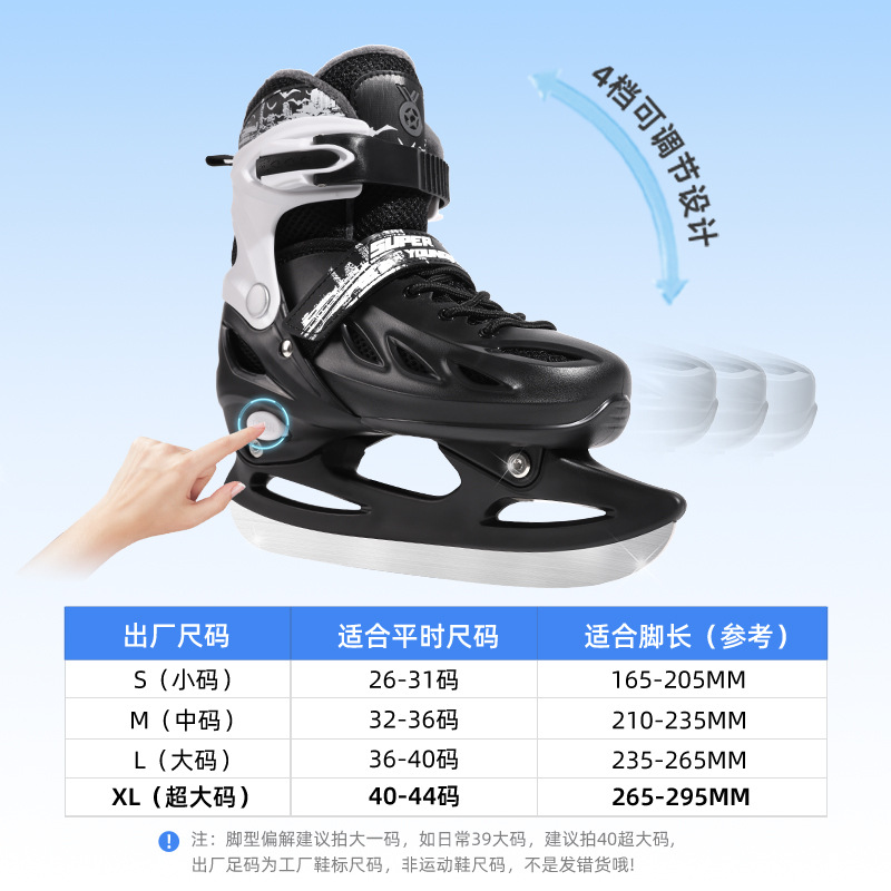 Маленький размер (165–205 мм) подходит для обычных размеров обуви 26–31.; Средний размер (210–235 мм) подходит для обычных размеров обуви 32–36.; Большой размер (235-265 мм) подходит для обычных размеров обуви 36-40.; Супербольшой размер (265-295 мм) подходит для обычных размеров обуви 40-44.