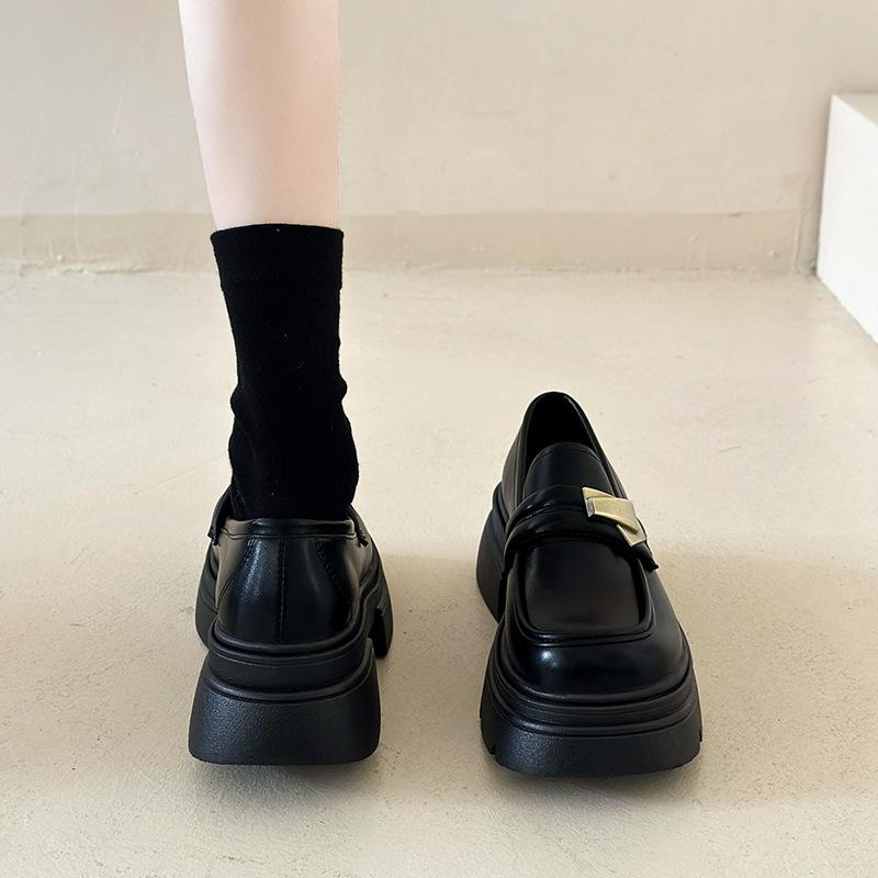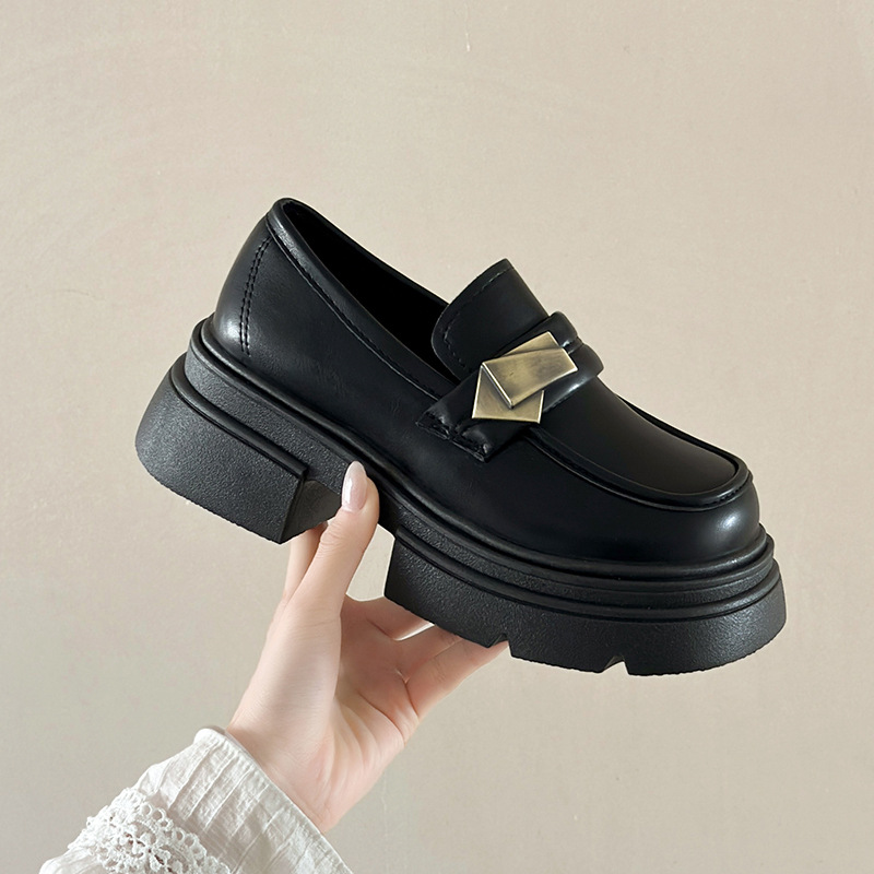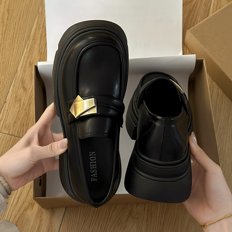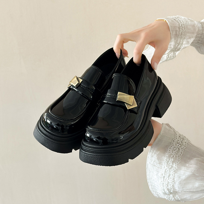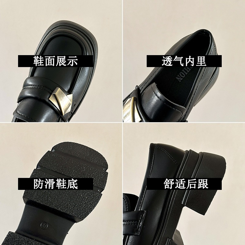 Маленькие черные кожаные туфли в британском стиле 2024 новые весенние туфли Lefu на толстой подошве Mary Jen одиночные туфли женщины