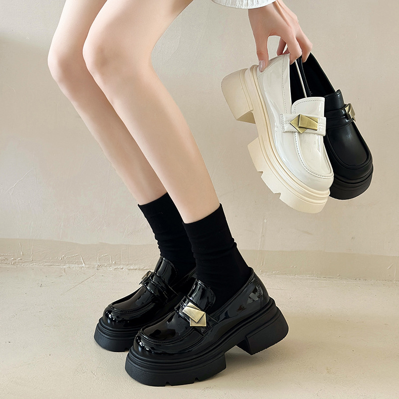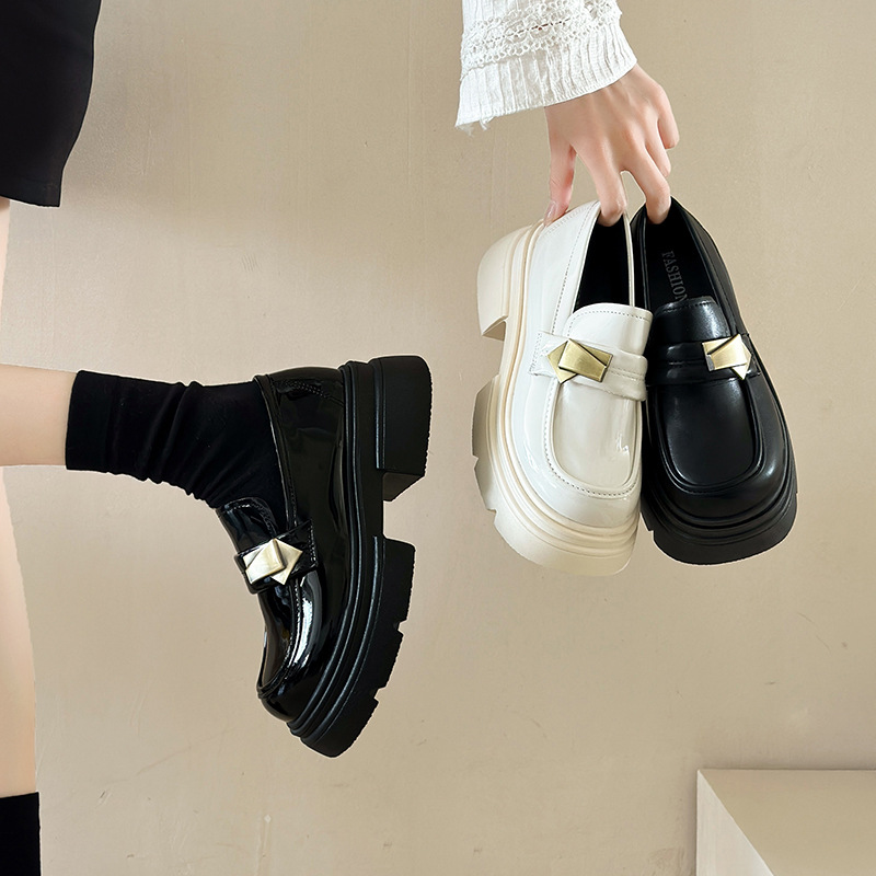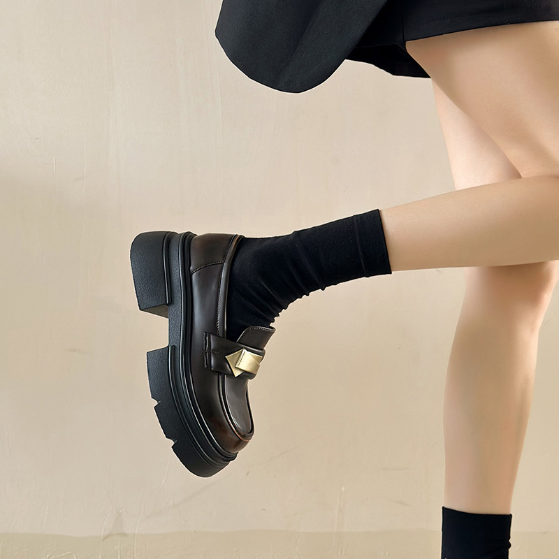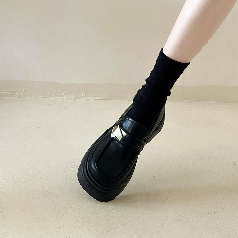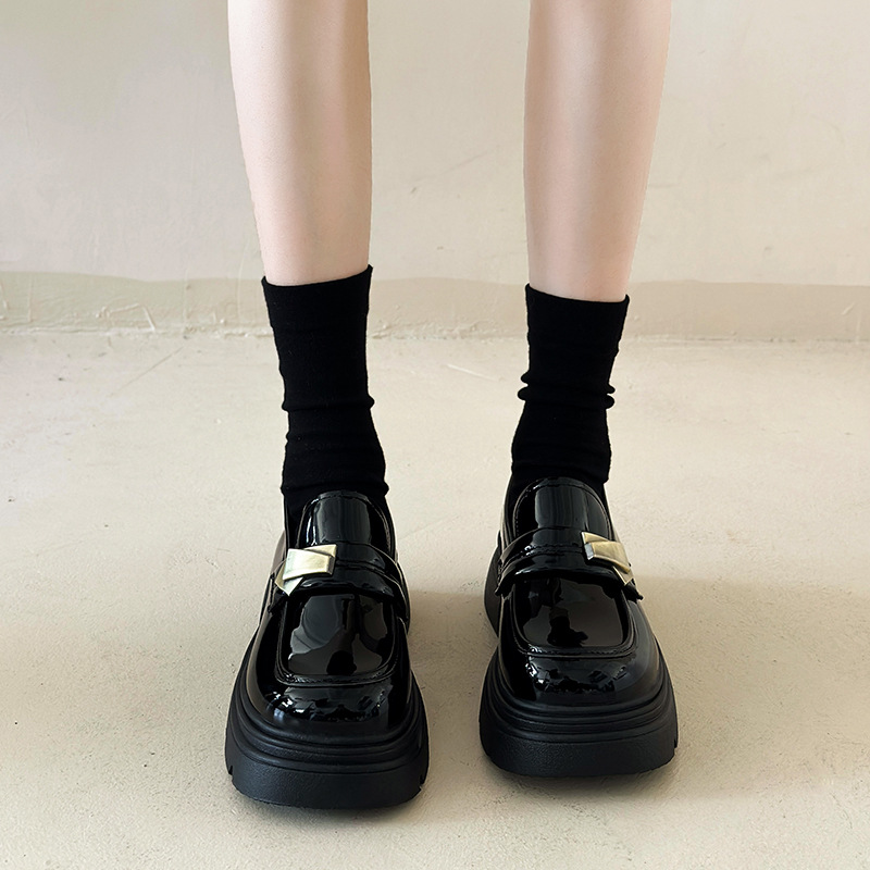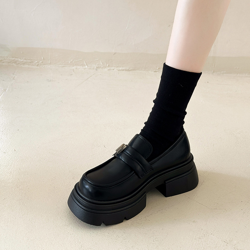 Маленькие черные кожаные туфли в британском стиле 2024 новые весенние туфли Lefu на толстой подошве Mary Jen одиночные туфли женщины