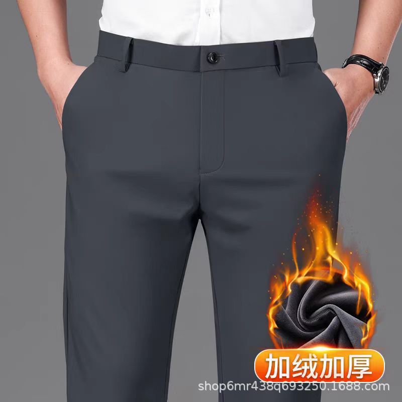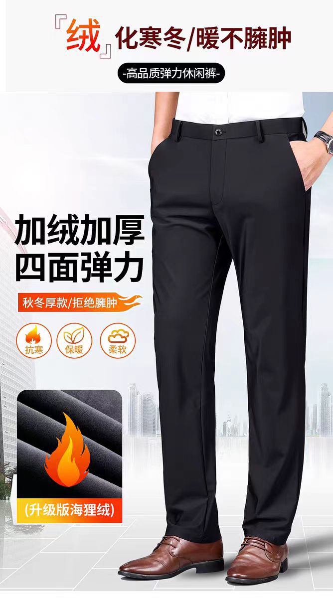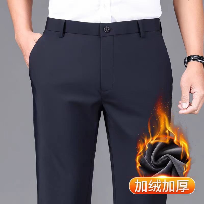 Четыре стороны эластичные осенью и зимой, толстые прямые мужские повседневные брюки, толстые деловые брюки, свободные брюки, мужчины