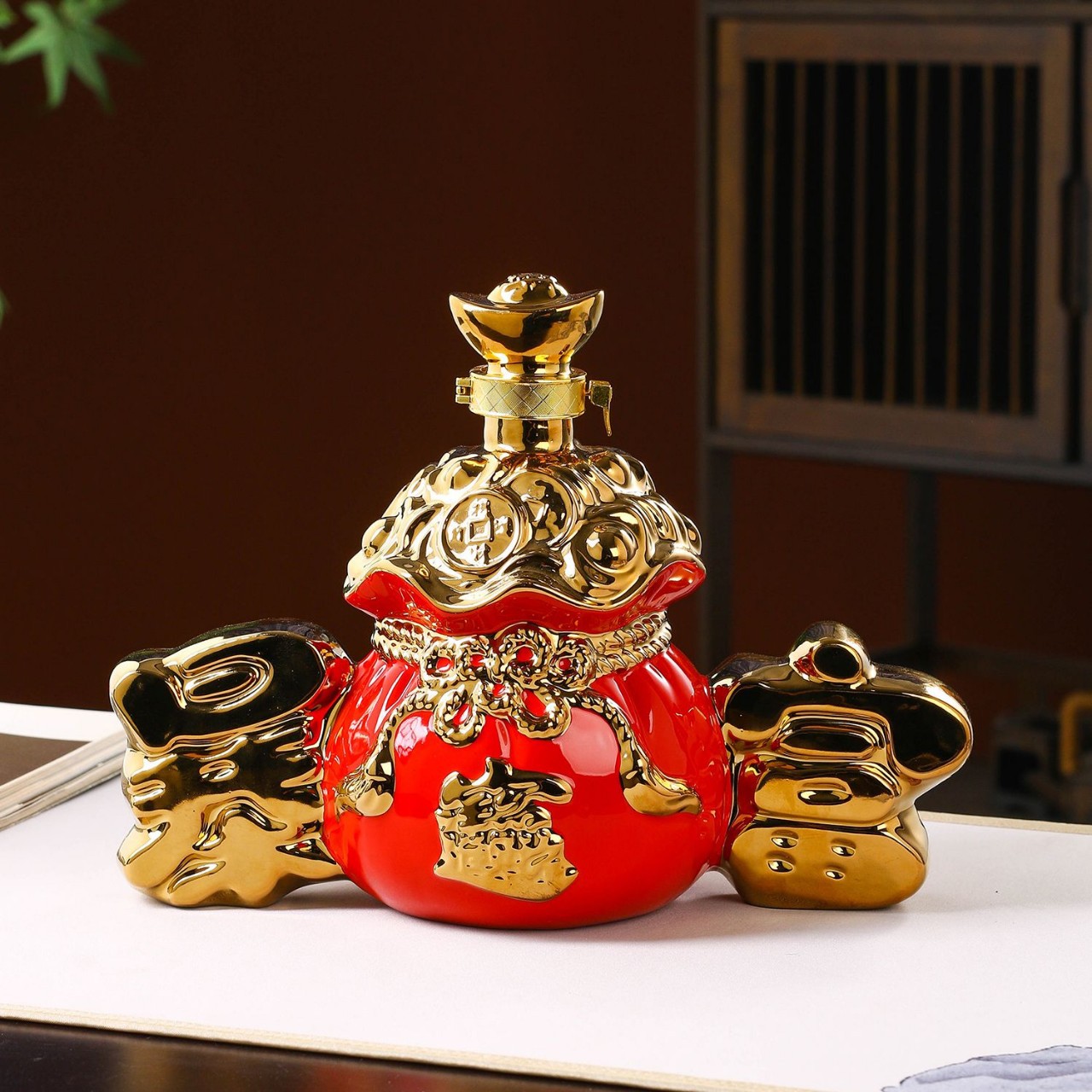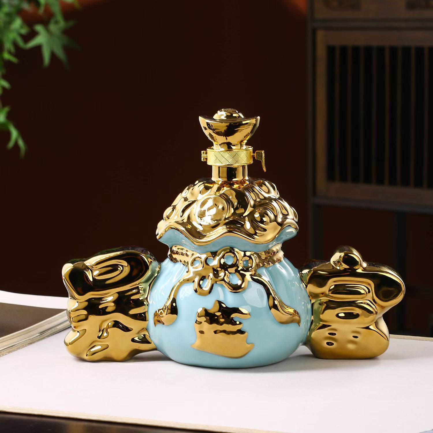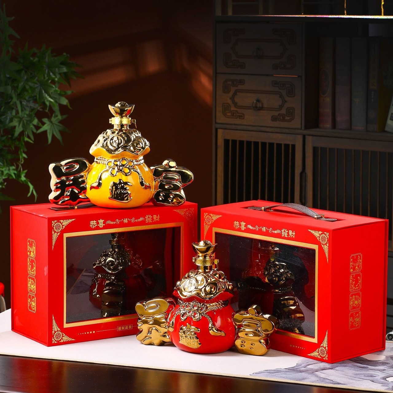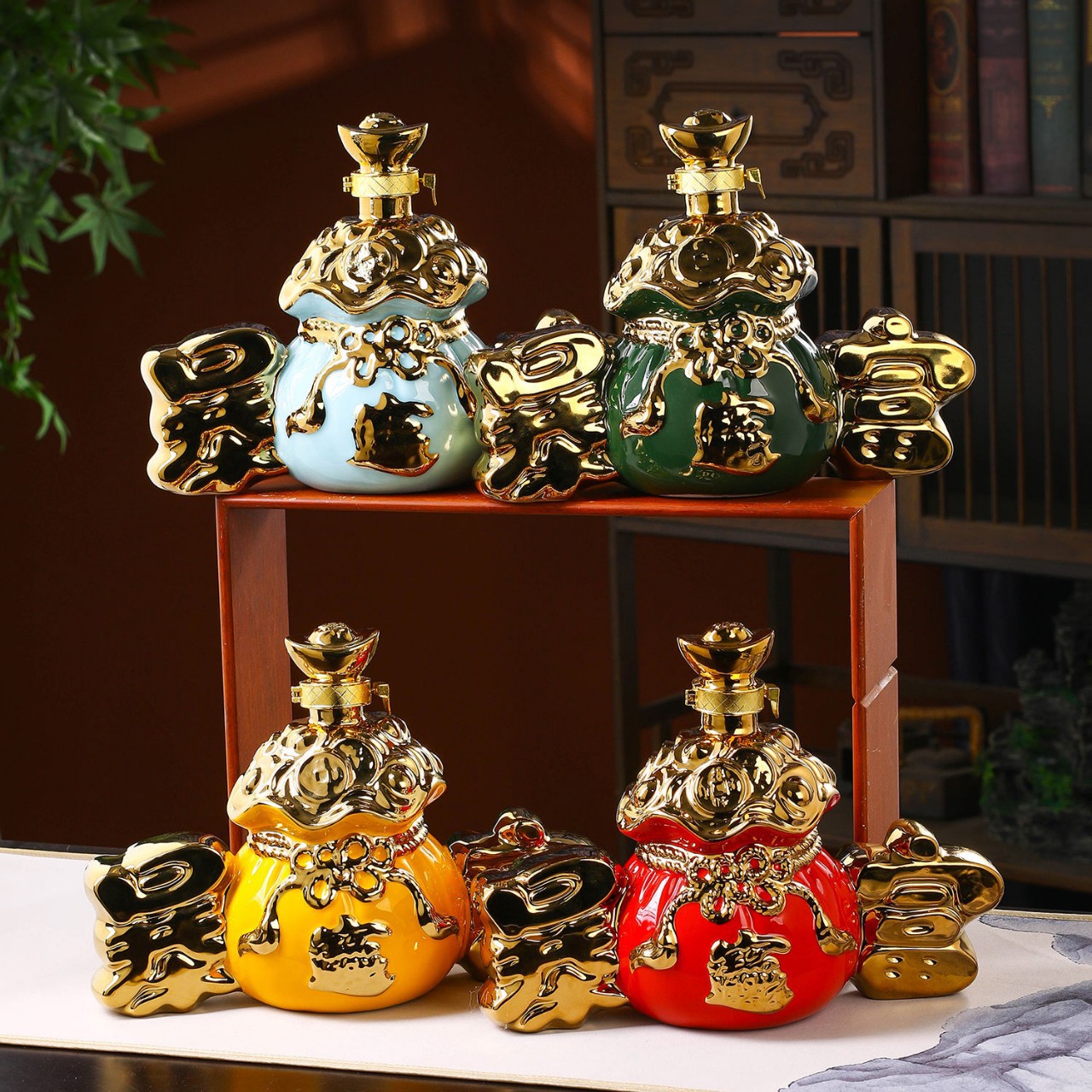 Керамическая бутылка вина 1.0kg подарочная коробка ретро позолоченная банка для вина с рогом изобилия винная банка креативная ретро мебель для дома винный набор