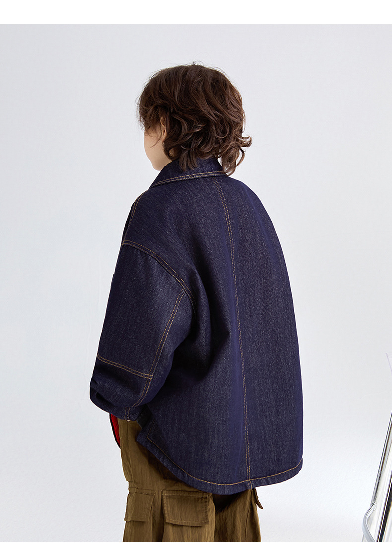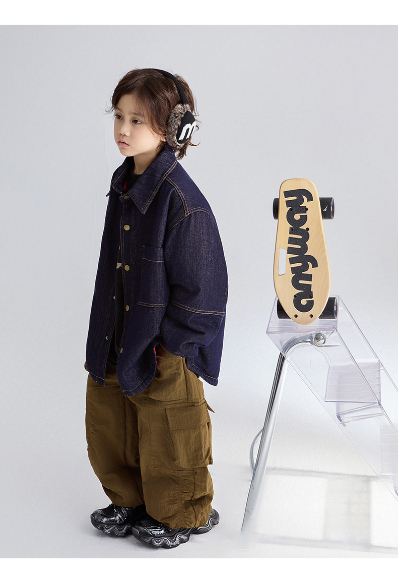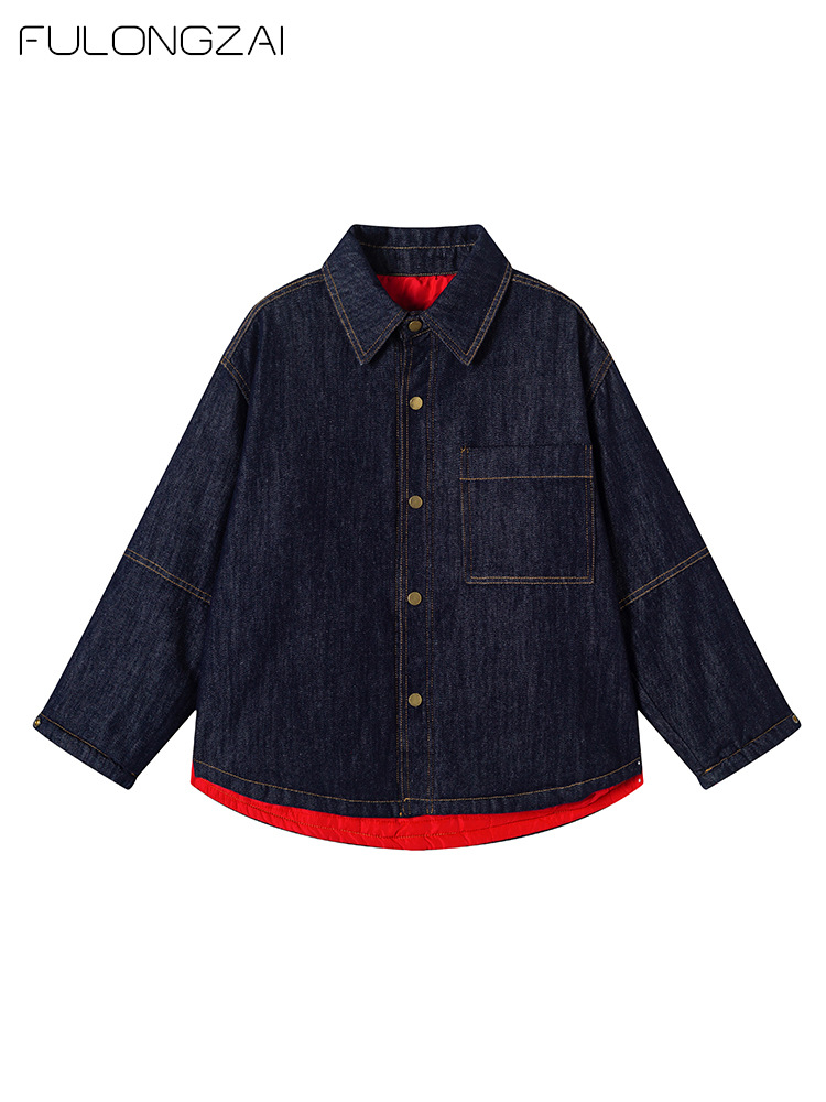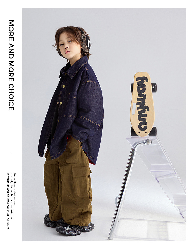 Детская одежда для родителей и детей, зима 2024, новый стиль для мальчиков и девочек, свободные и стильные детские джинсовые рубашки среднего и большого размера на флисовой подкладке и утолщенные детские джинсовые рубашки.