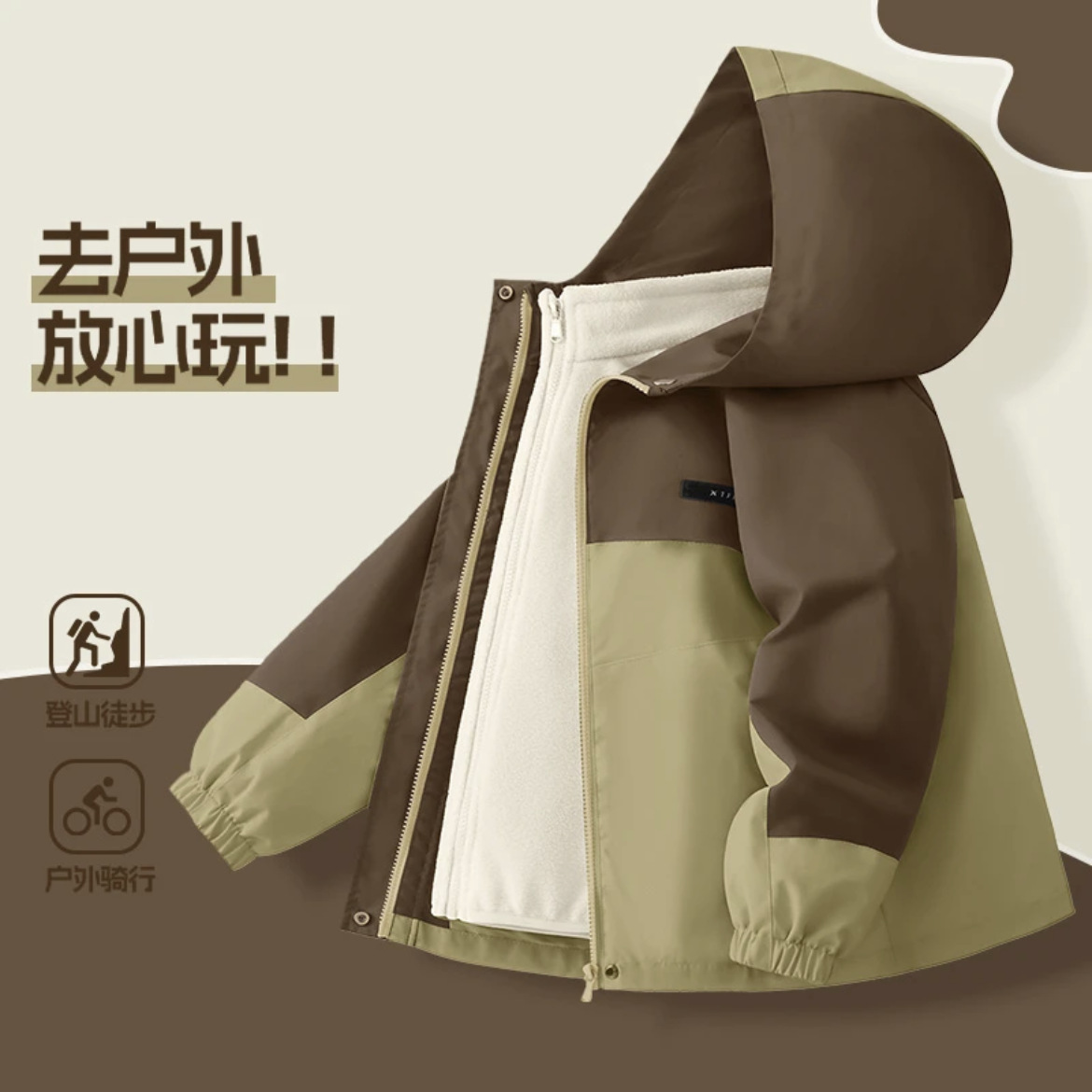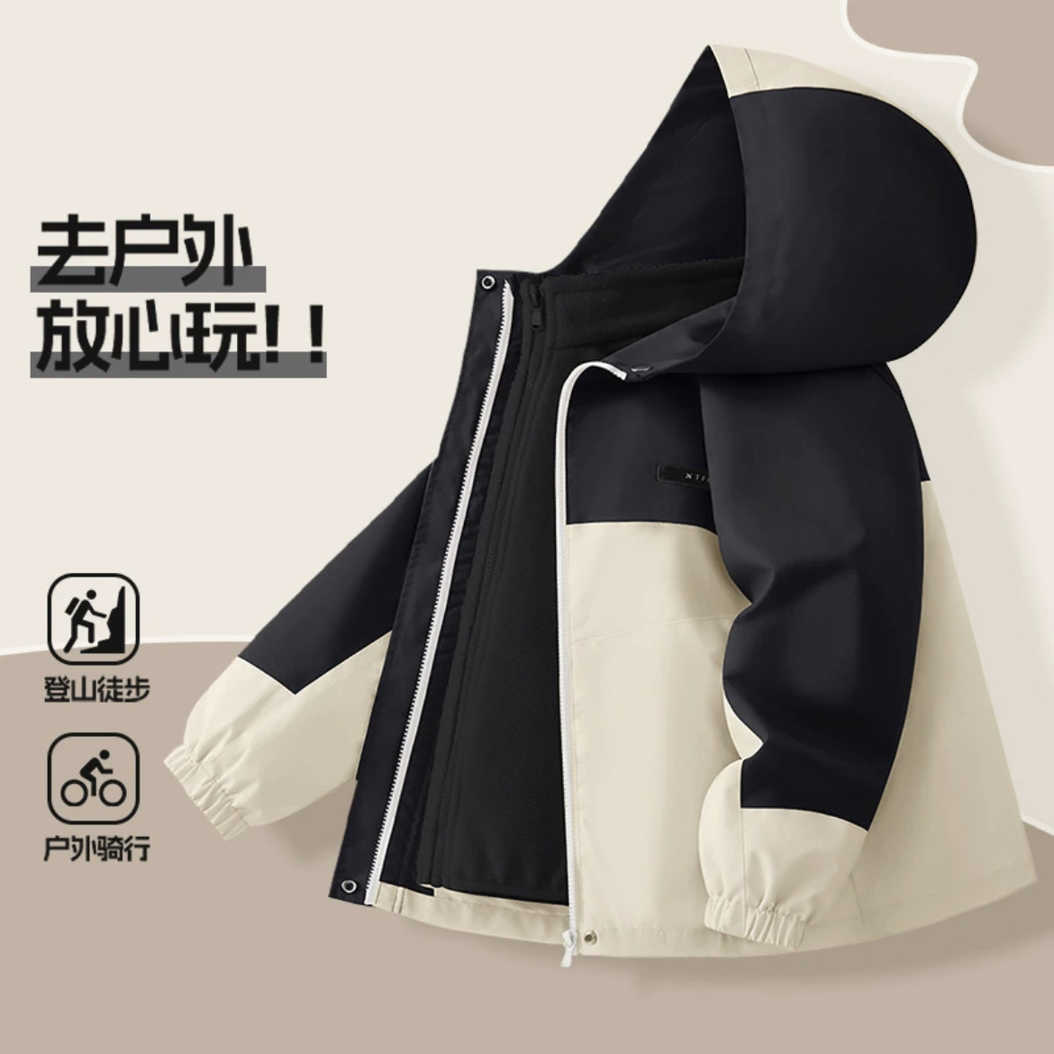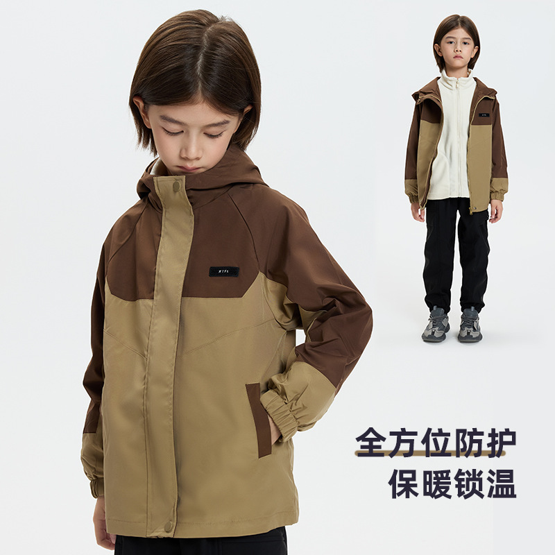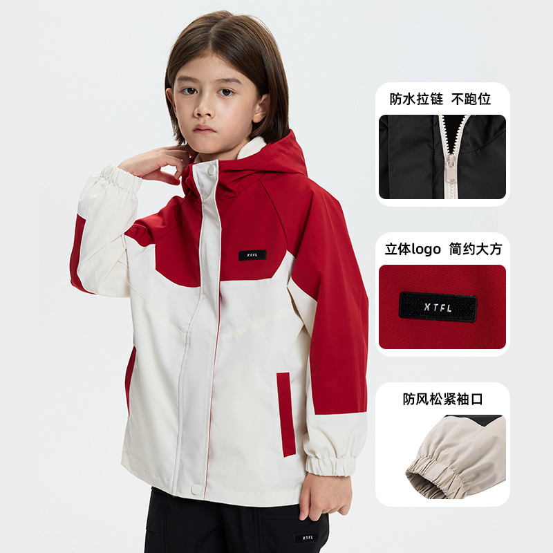 Комплект из трех предметов для мальчиков, состоящий из 0.05kg предметов, ветрозащитная, водонепроницаемая и теплая детская утолщенная куртка для активного отдыха, модная для походов.