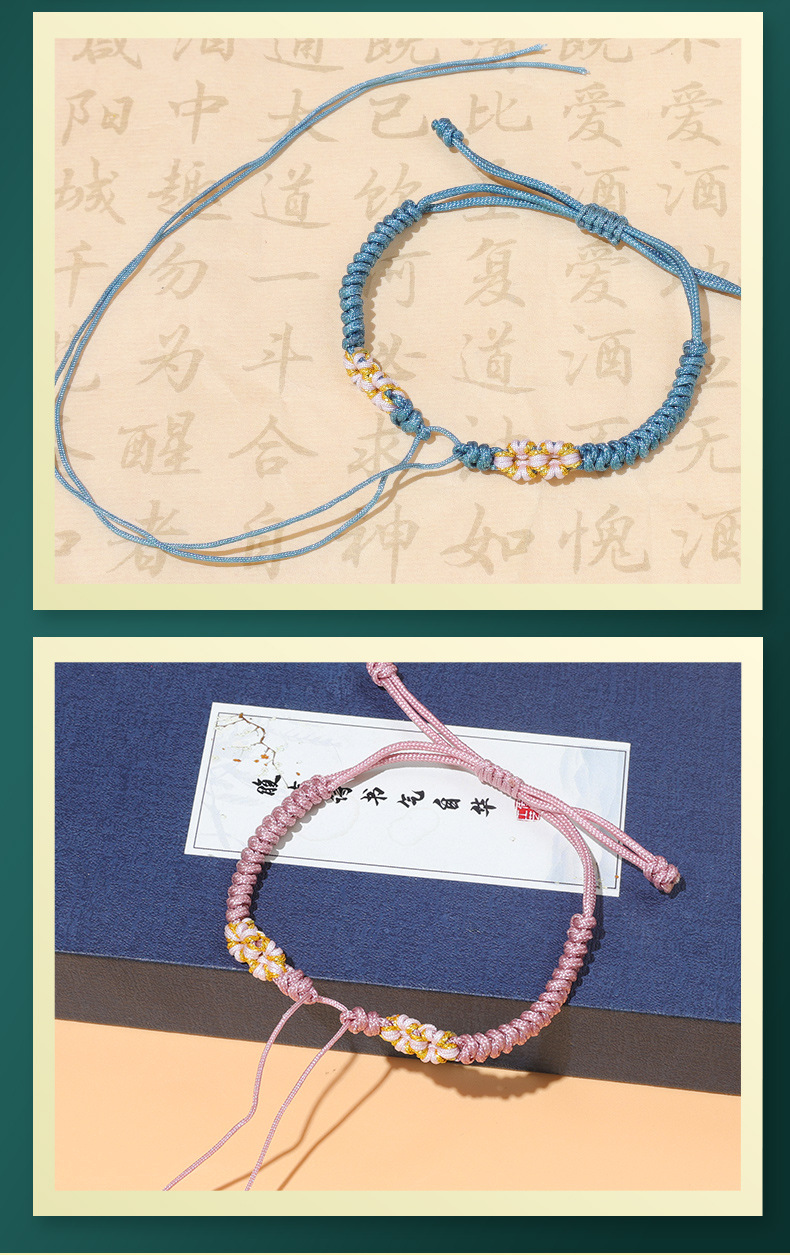 Браслет ручной работы из плетеной веревки с цветком персика, полуфабрикат, можно украшать бусинами, золотой замок-бабочка, ювелирные аксессуары в китайском стиле оптом