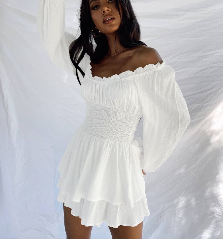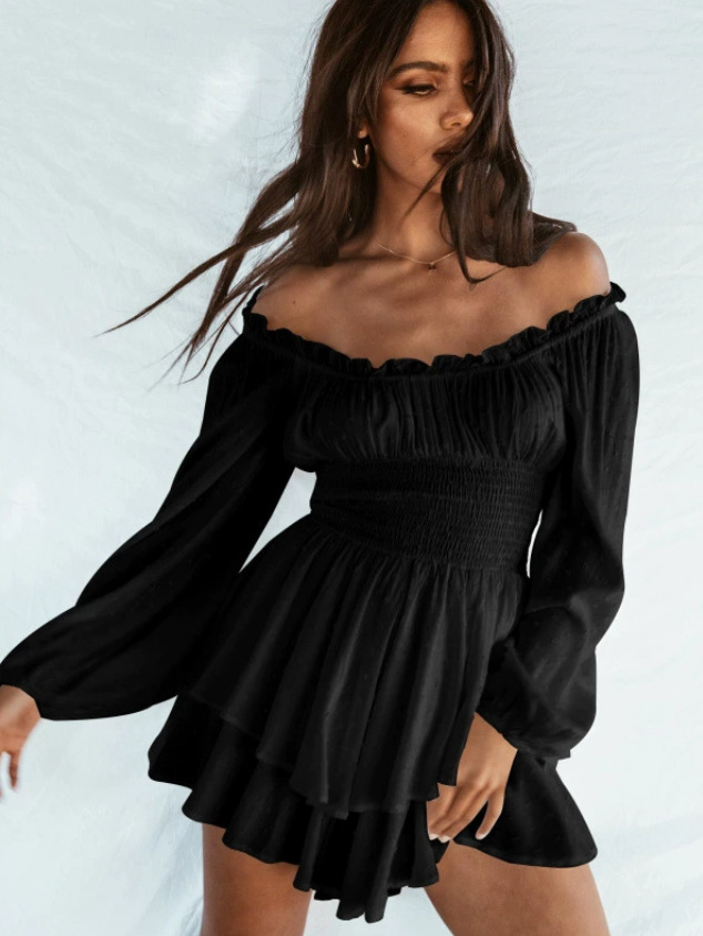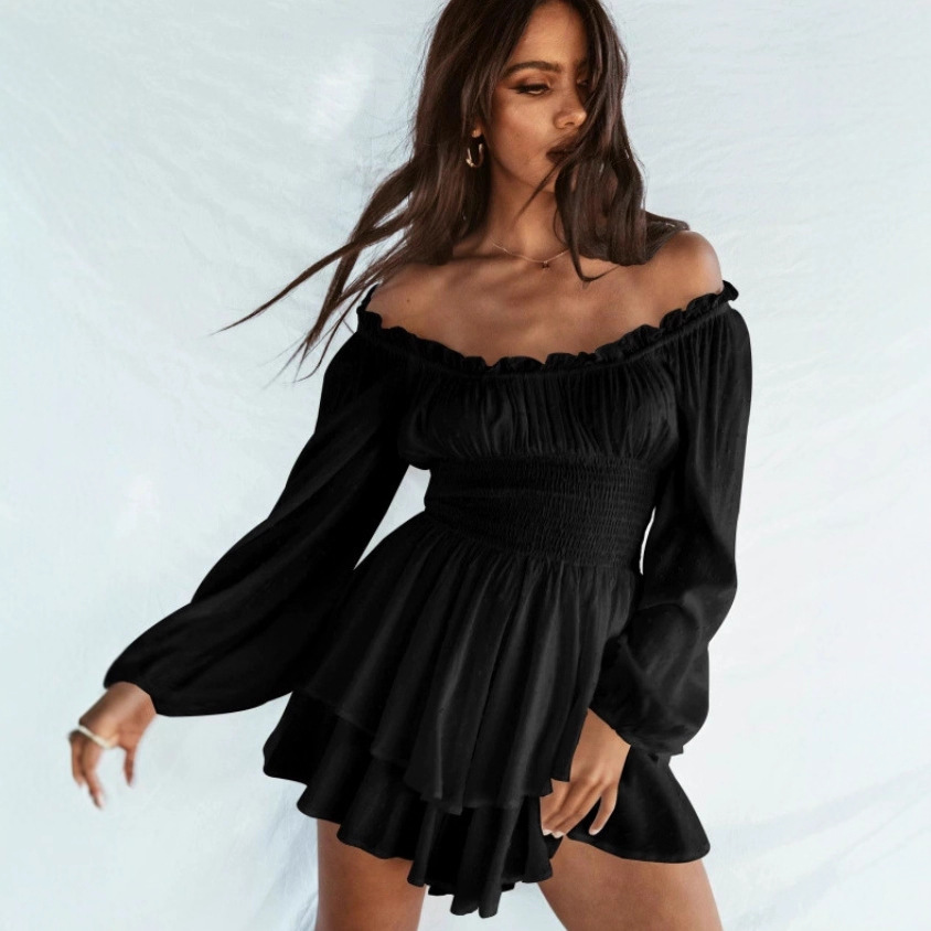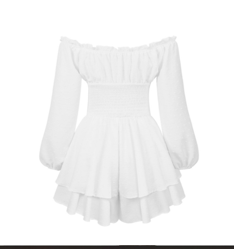Европейский и американский модный комбинезон для женщин, однотонный, осенний, с квадратным вырезом, рукавами-фонариками, оборками, шортами и юбкой-брюками, повседневный.