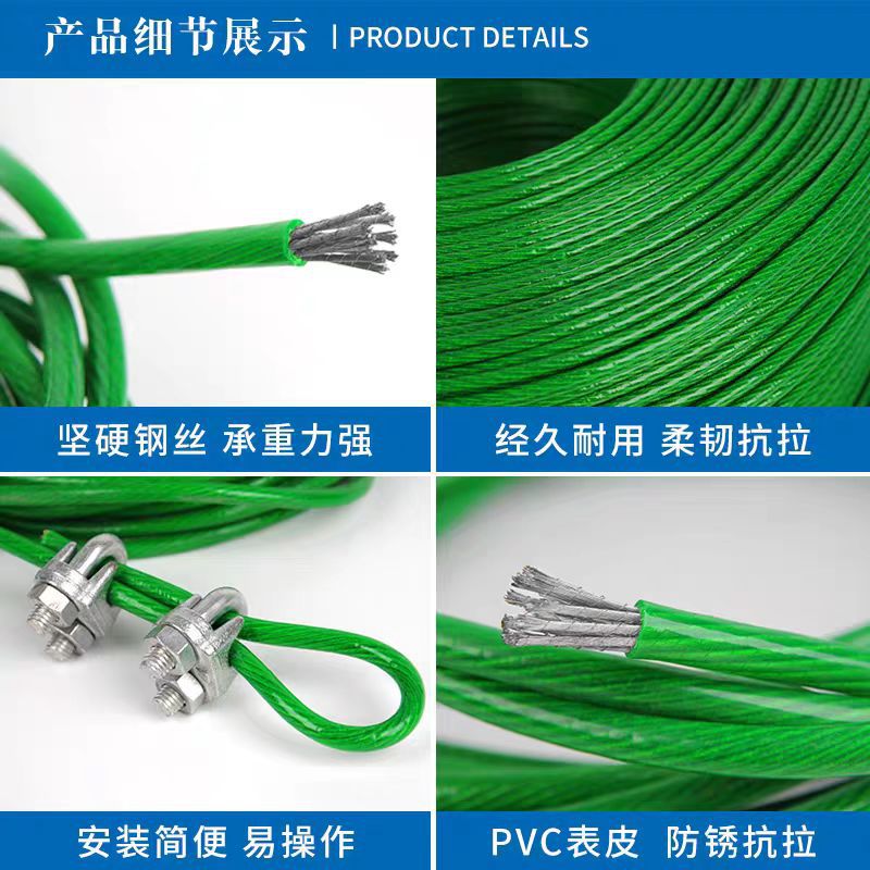 Зеленый пластиковый трос для связывания, сетка для теплиц, виноградная решетка, пластиковый трос с ПВХ-покрытием для бельевой веревки.