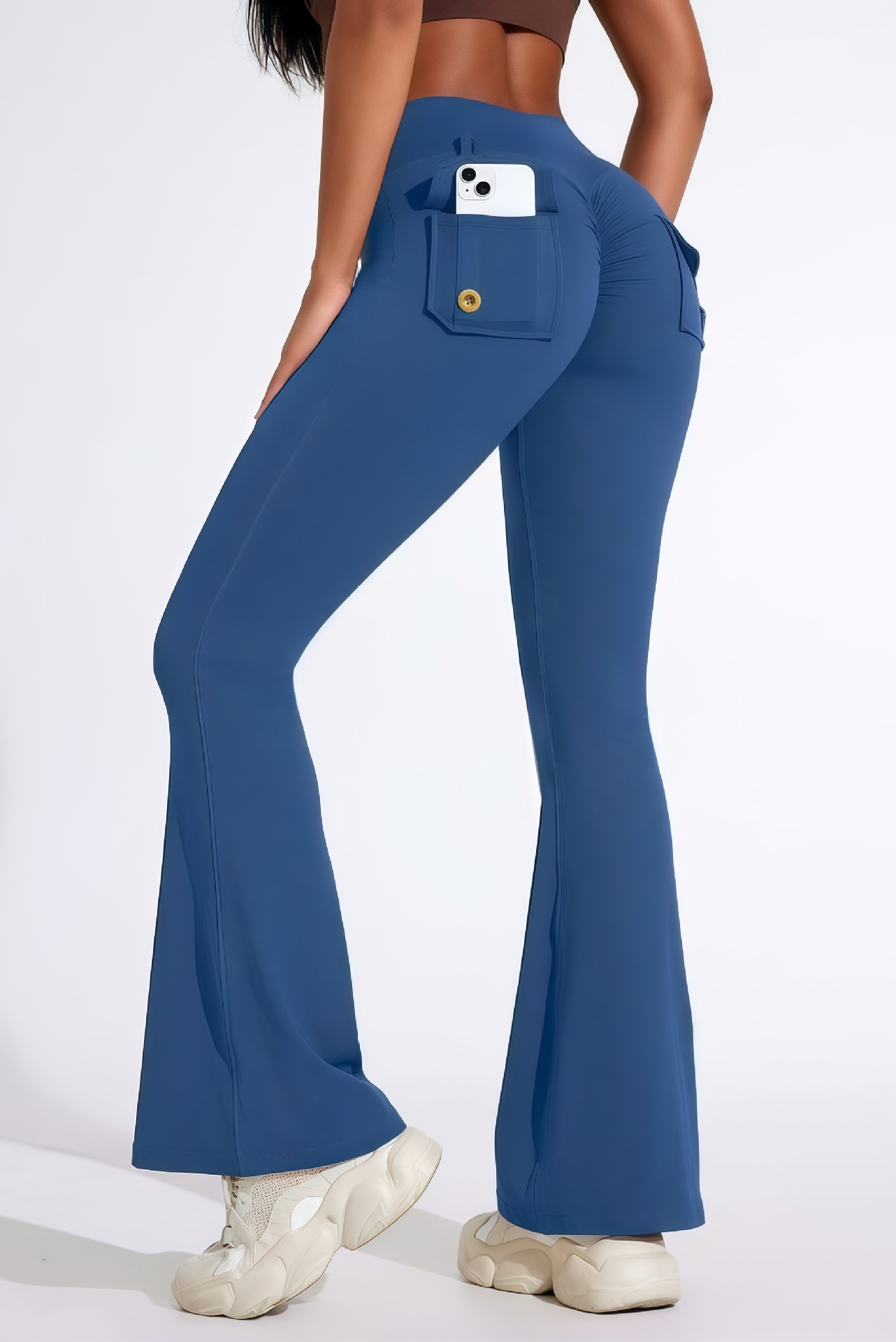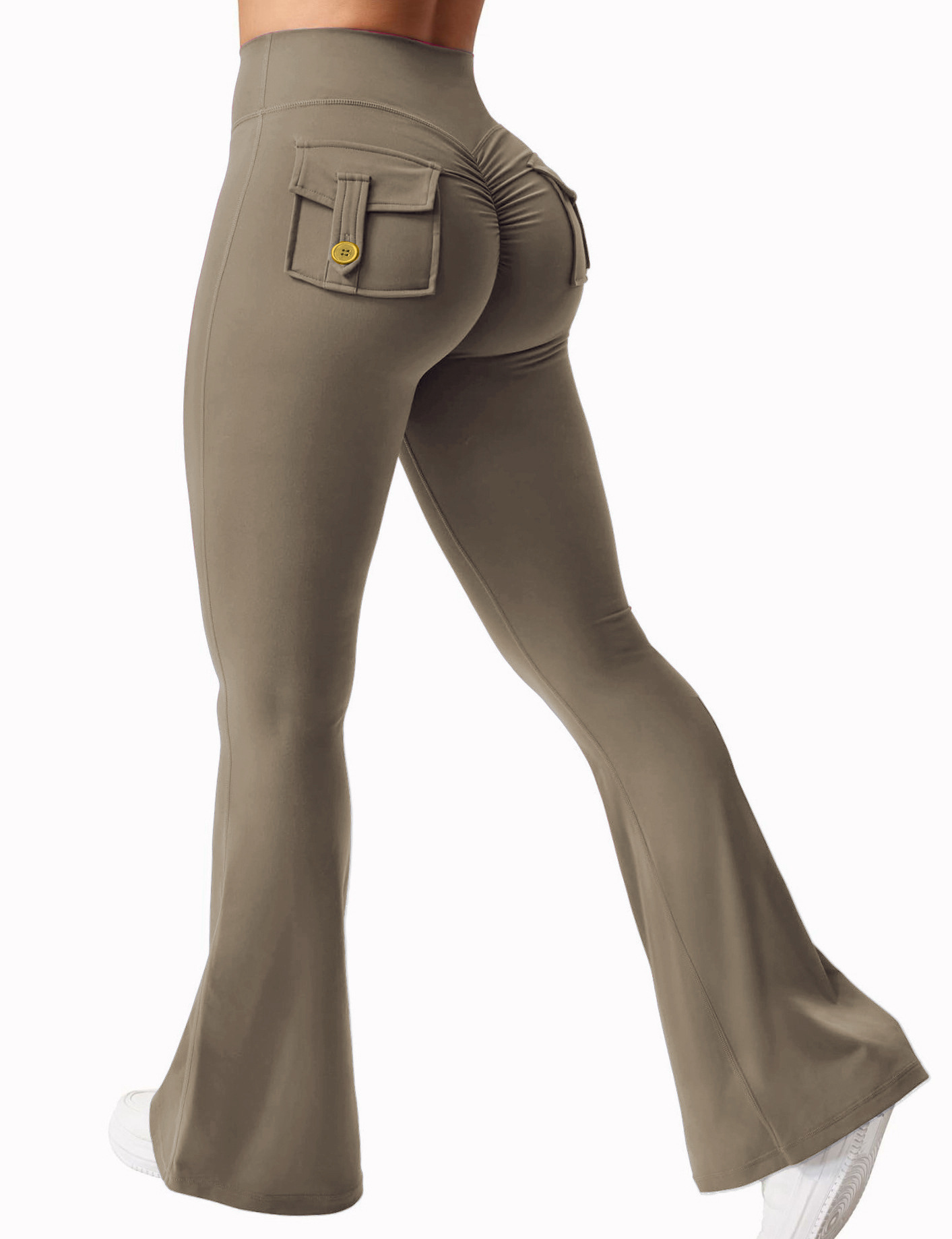Трансграничные Амазонка карманные брюки йоги женские расклешенные брюки