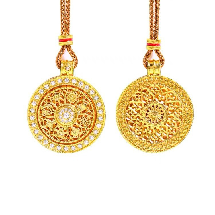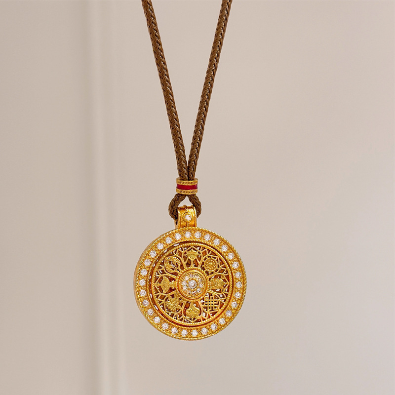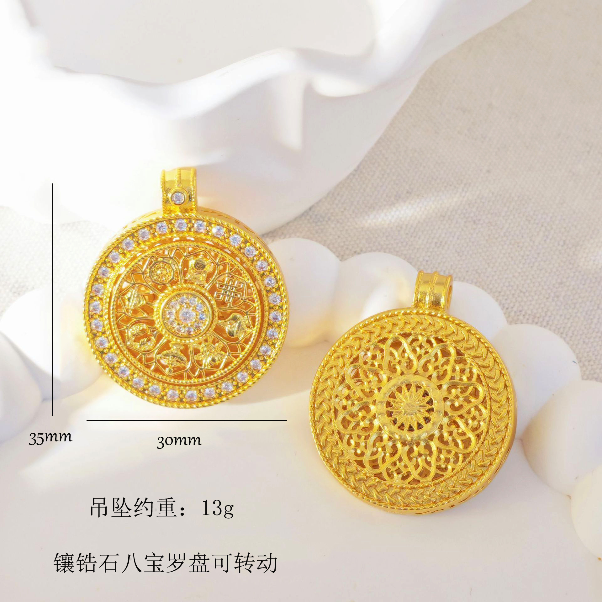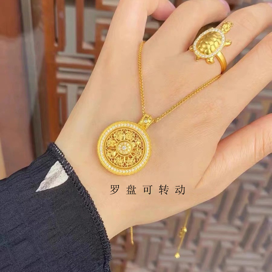Золотой магазин тот же древний французский песочный золотой восемь сокровищ компас подвеска ретро моды новый национальный прилив полое ожерелье женщина удача