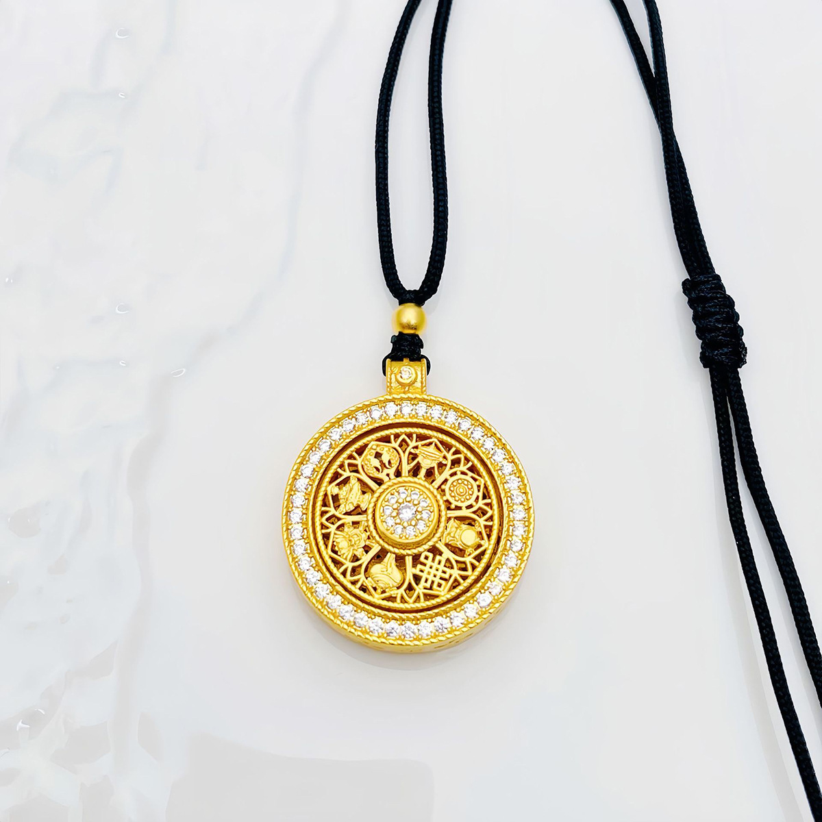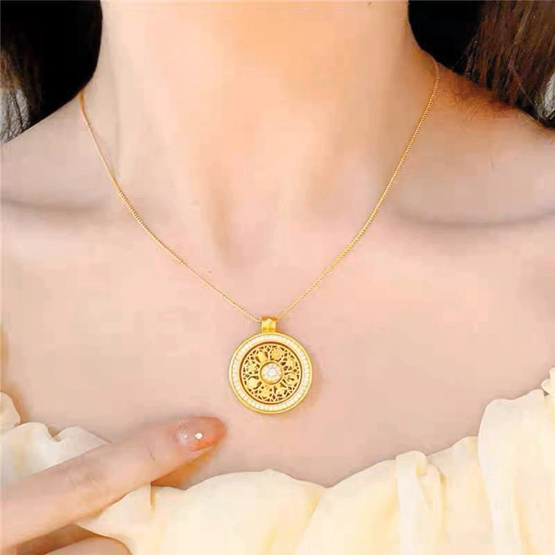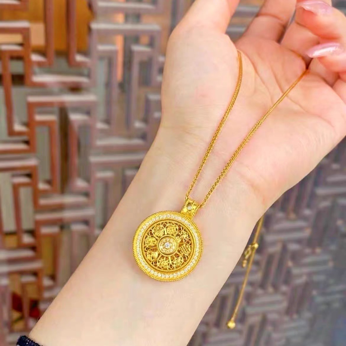 Золотой магазин тот же древний французский песочный золотой восемь сокровищ компас подвеска ретро моды новый национальный прилив полое ожерелье женщина удача
