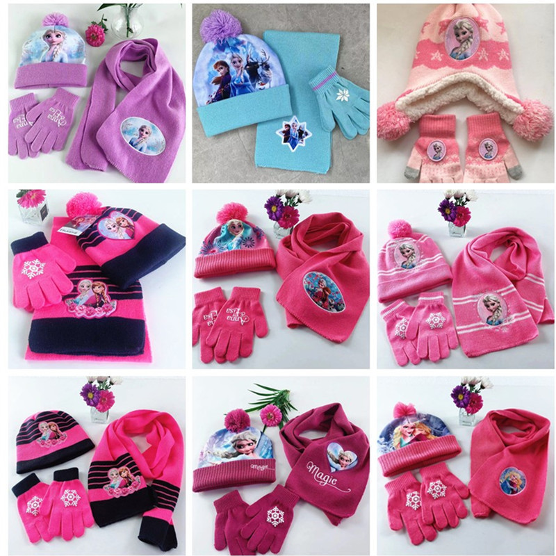 Трикотажная шляпа шарф из трех частей Ледяная принцесса девушка русалка мультфильм дети зимние теплые рождественские перчатки