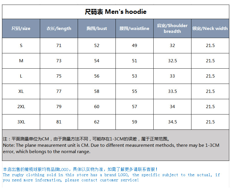 S; M; L; XL; 2XL; 3XL