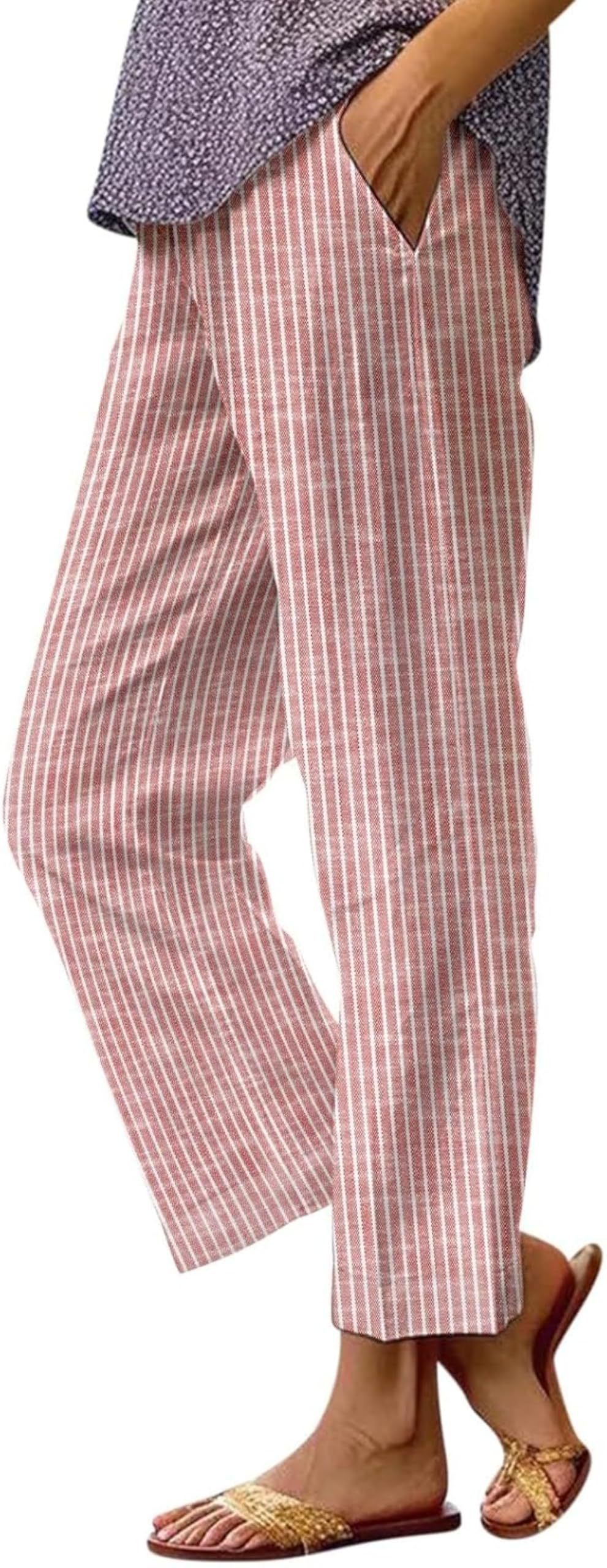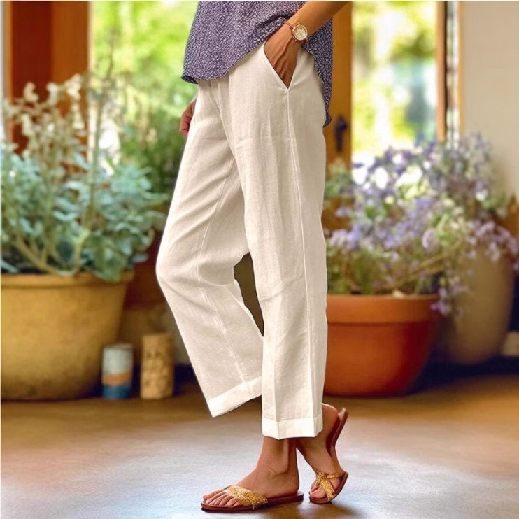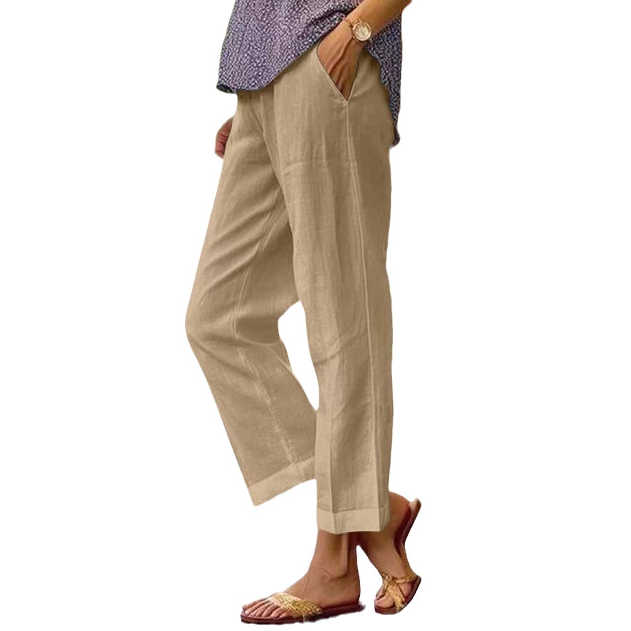 Новые женские широкие брюки из хлопка и льна с эластичным поясом, однотонные, свободного кроя, для весны и лета 2025 года, для трансграничной торговли (Ebay, Amazon, Wish)