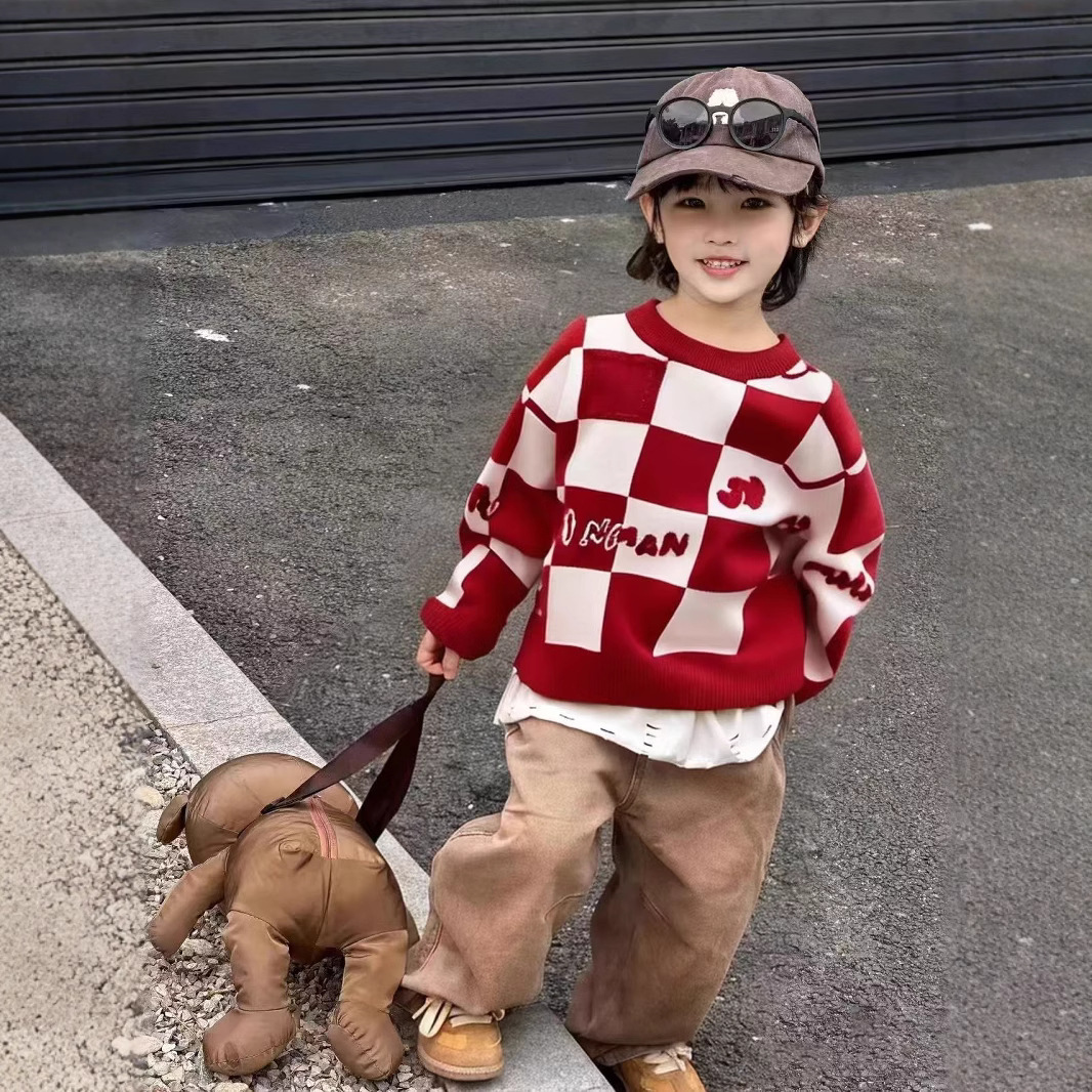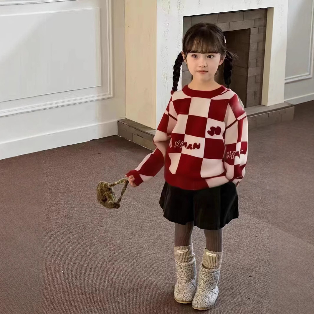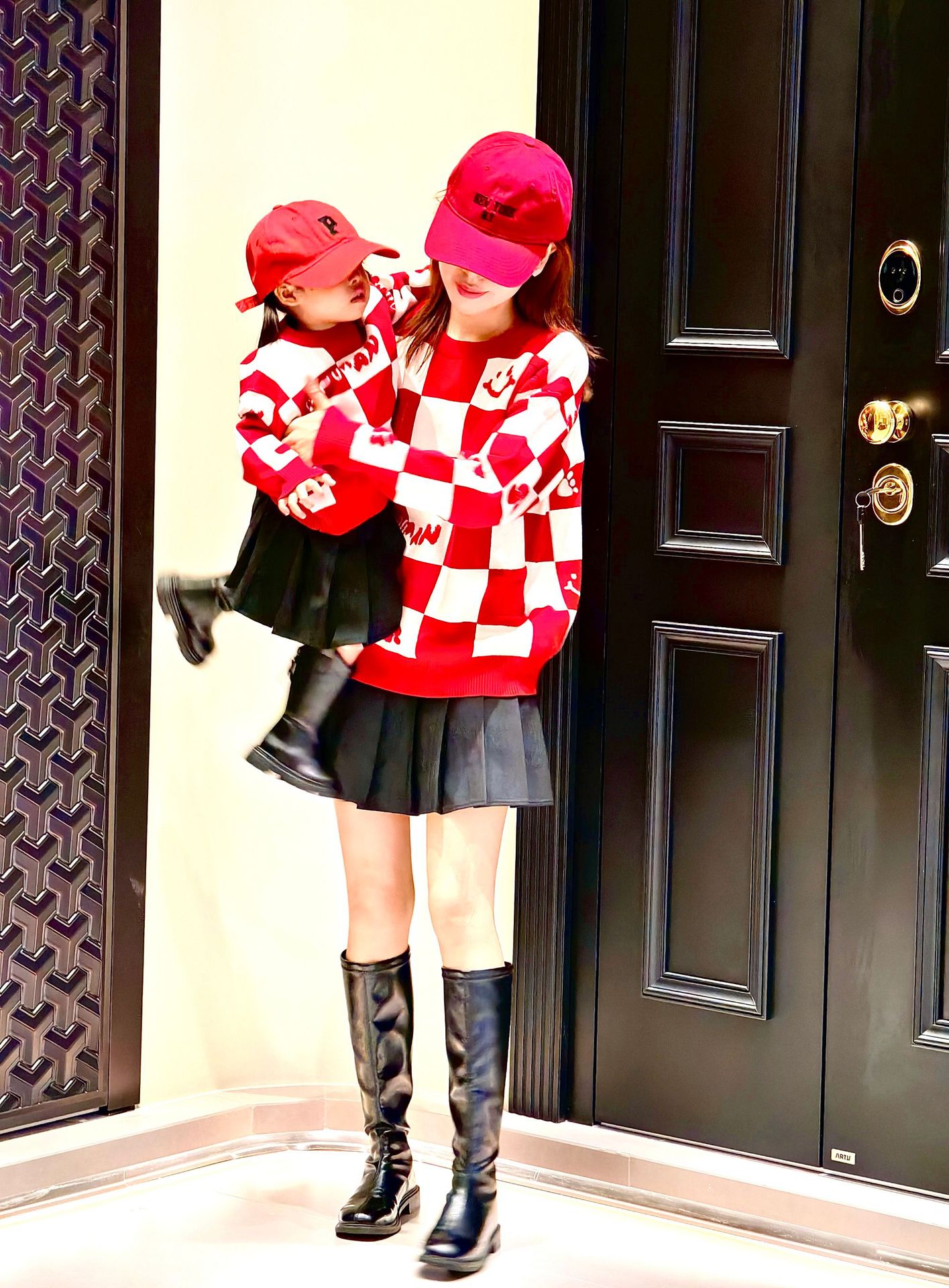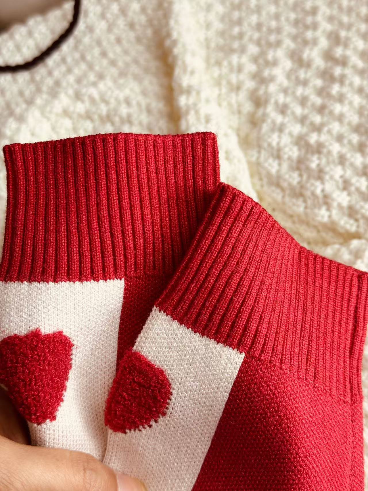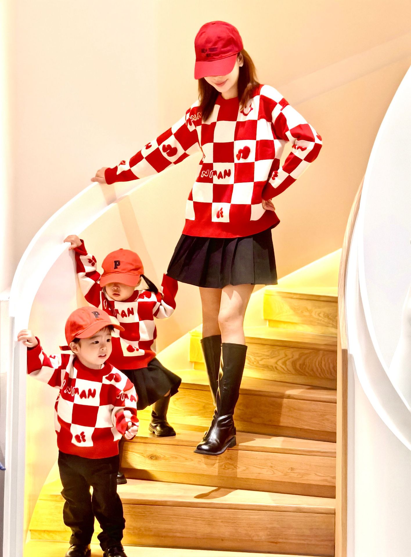 Родина и ребенок в красном любовном свитере