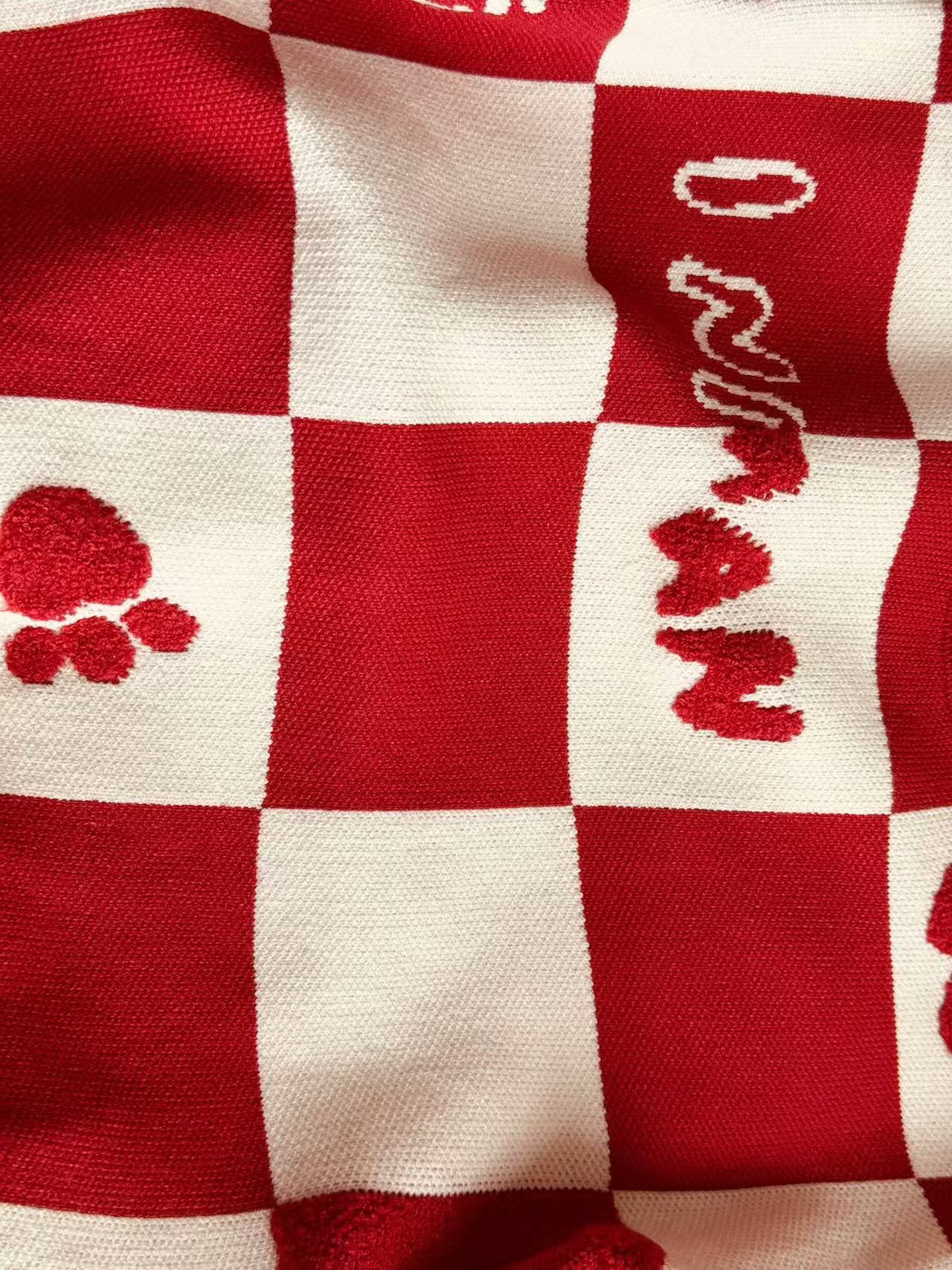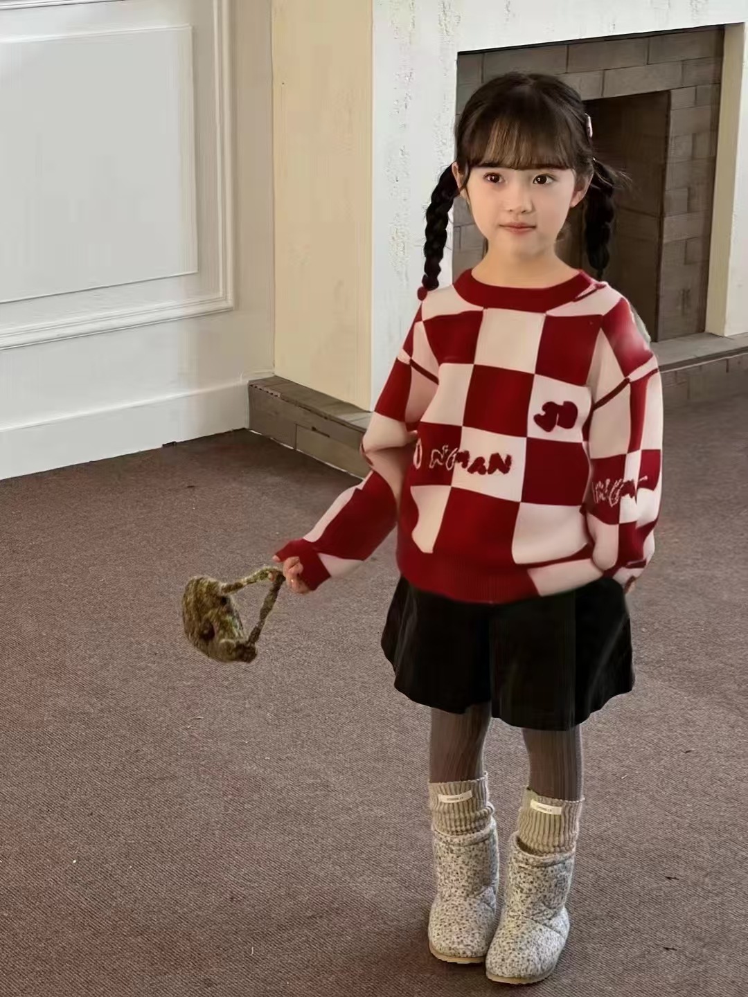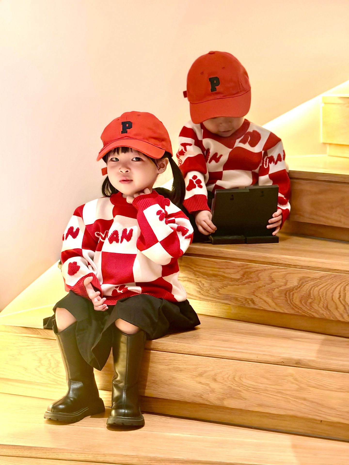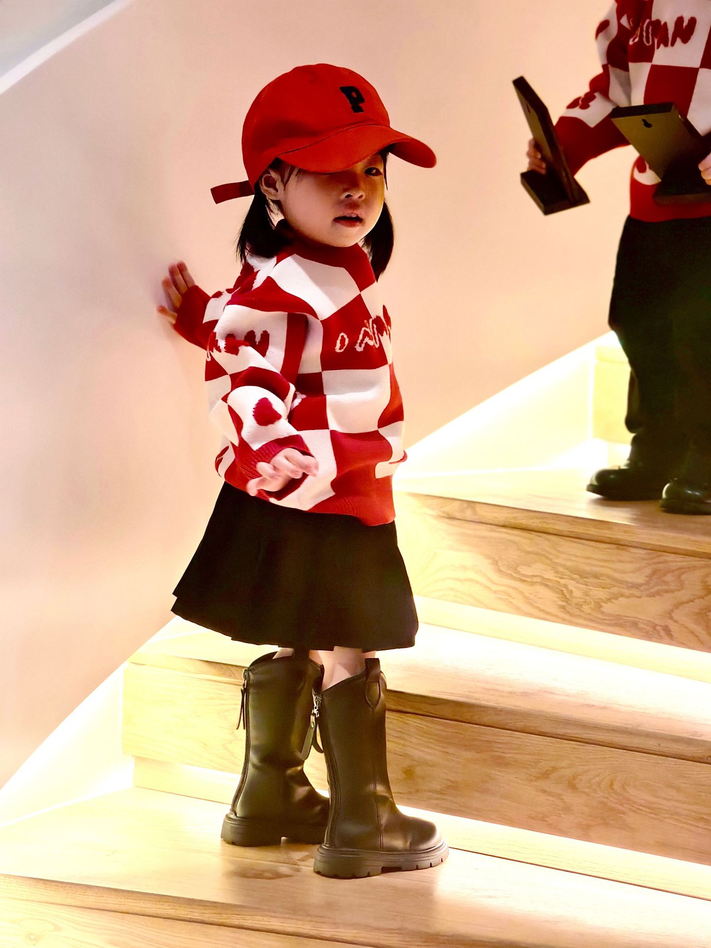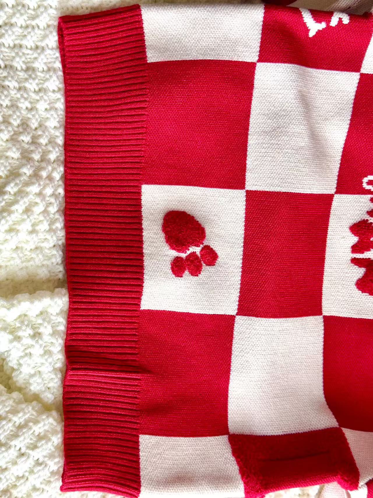 Родина и ребенок в красном любовном свитере