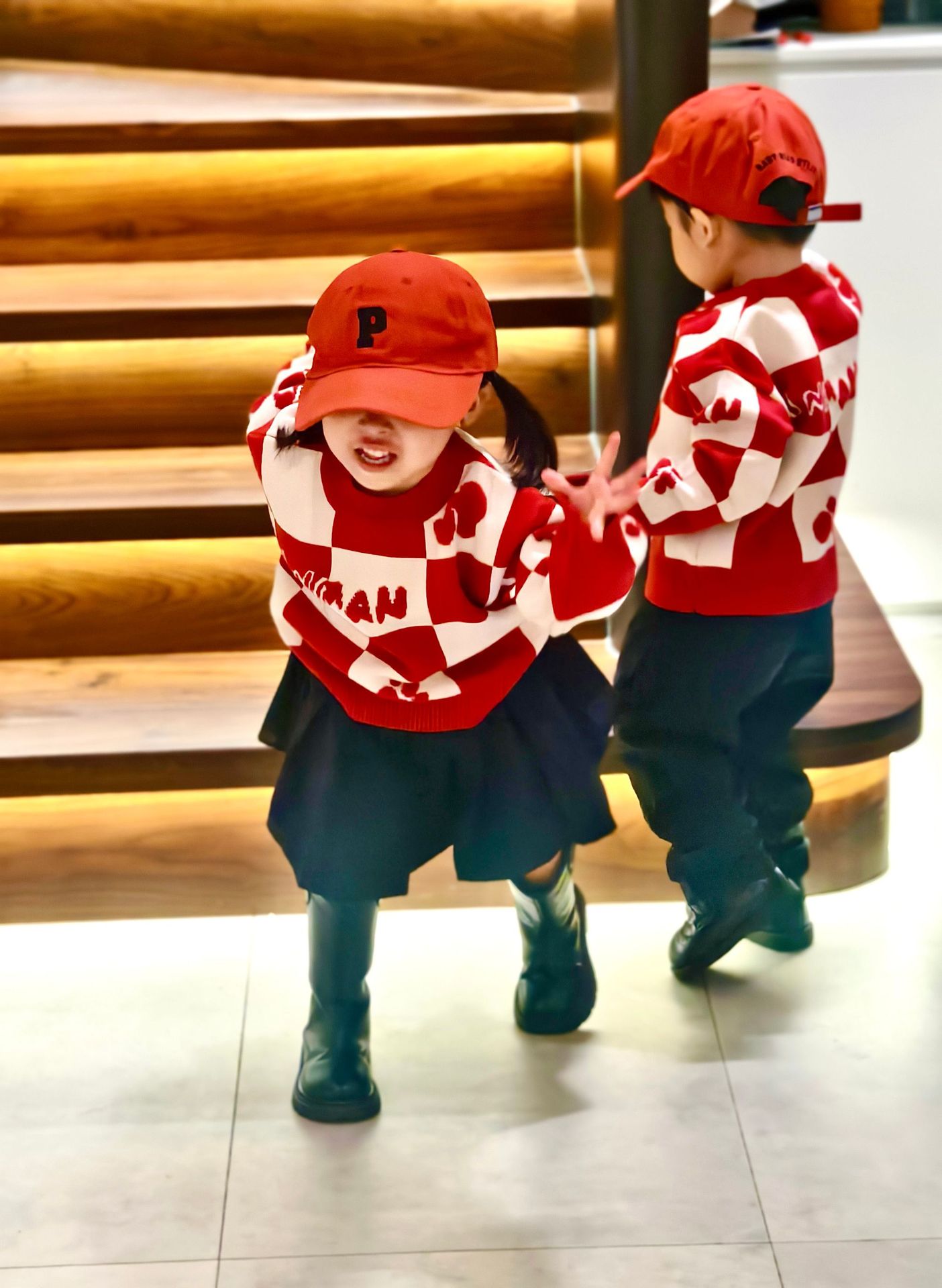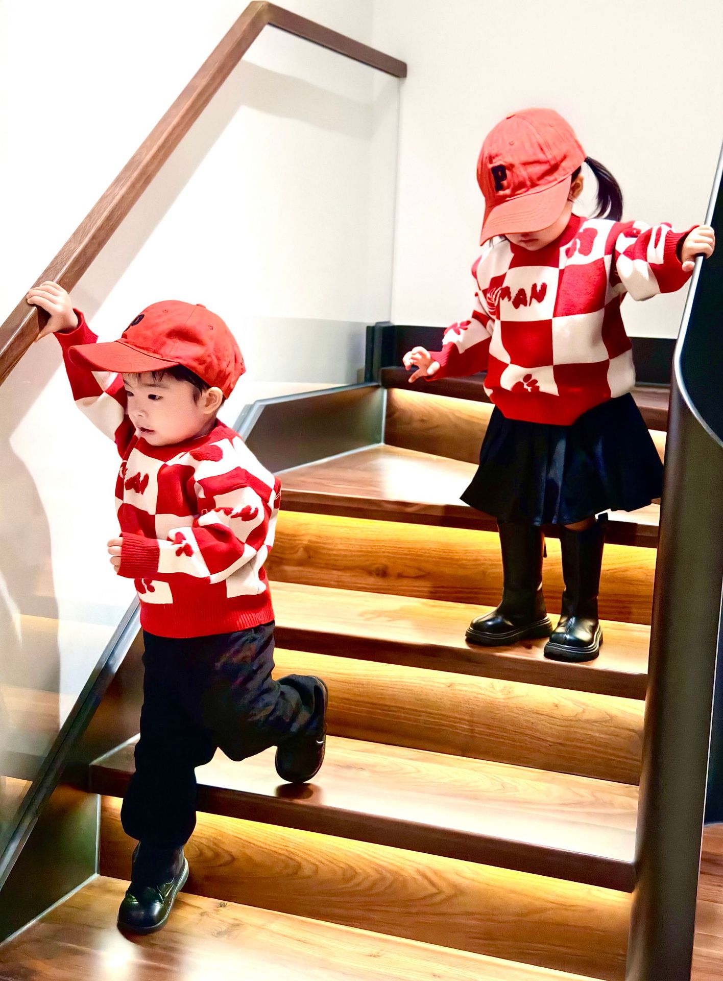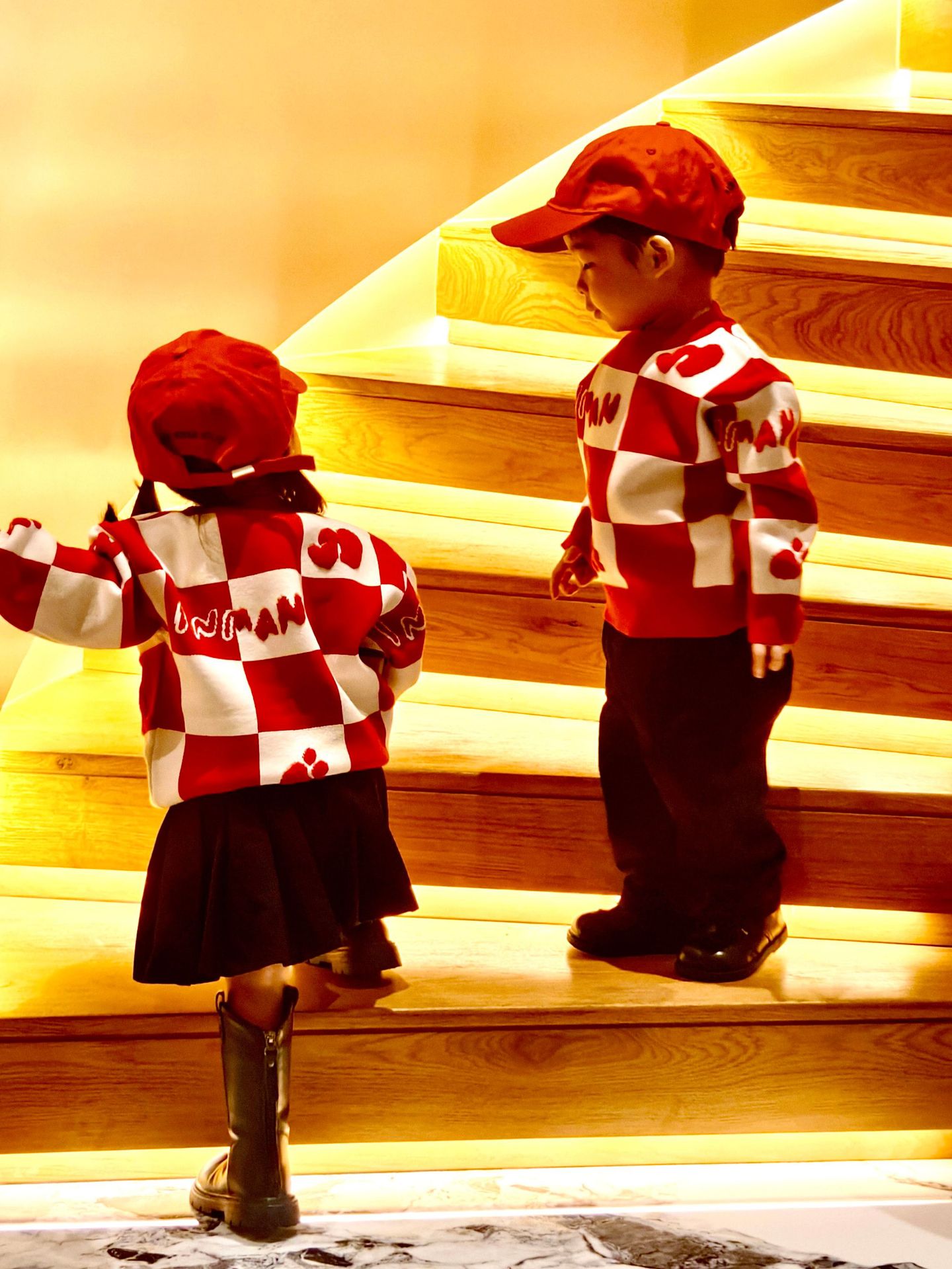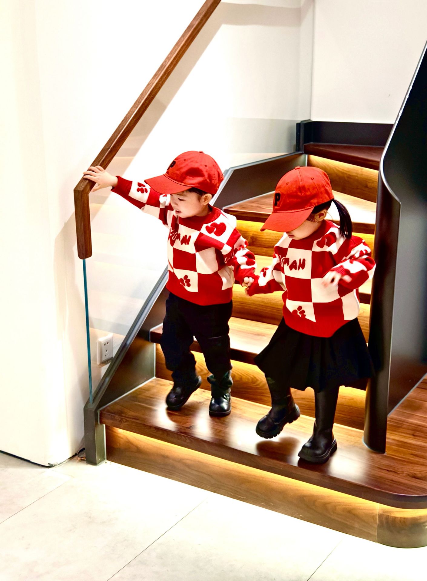 Родина и ребенок в красном любовном свитере