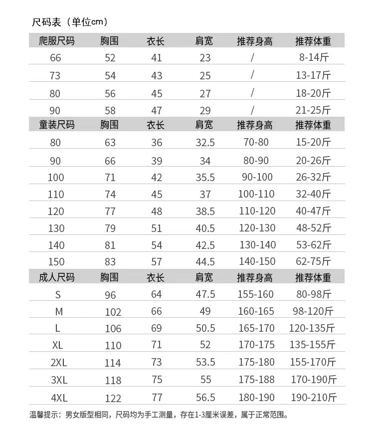80cm; 90cm; 100cm; 110cm; 120cm; 130cm; 140cm; 150cm; Взрослый С; Взрослый М; Взрослый L; Взрослый XL; Взрослый XXl; Взрослый 3XL; Взрослый 4XL