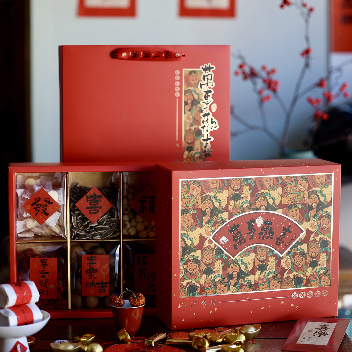 可以装年货、干货 、海鲜 、坚果特产零食等,此款礼盒通用,装任何产品