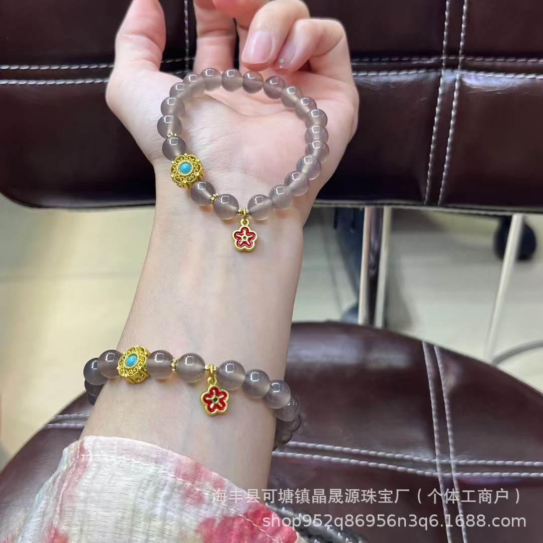 天然灰玛瑙手串烟紫玉髓花朵手链新中式首饰厂家批发直播网红福利 批发量越大价格越低,可供直播间长期合作,欢迎来电私聊