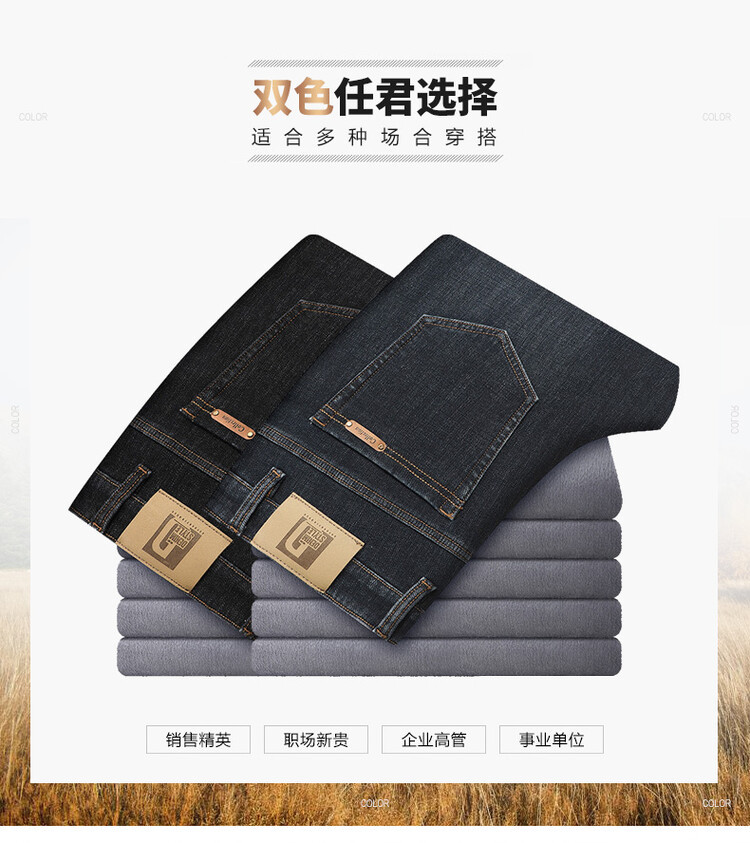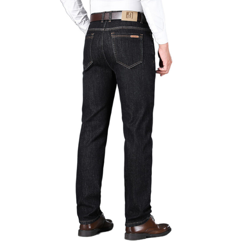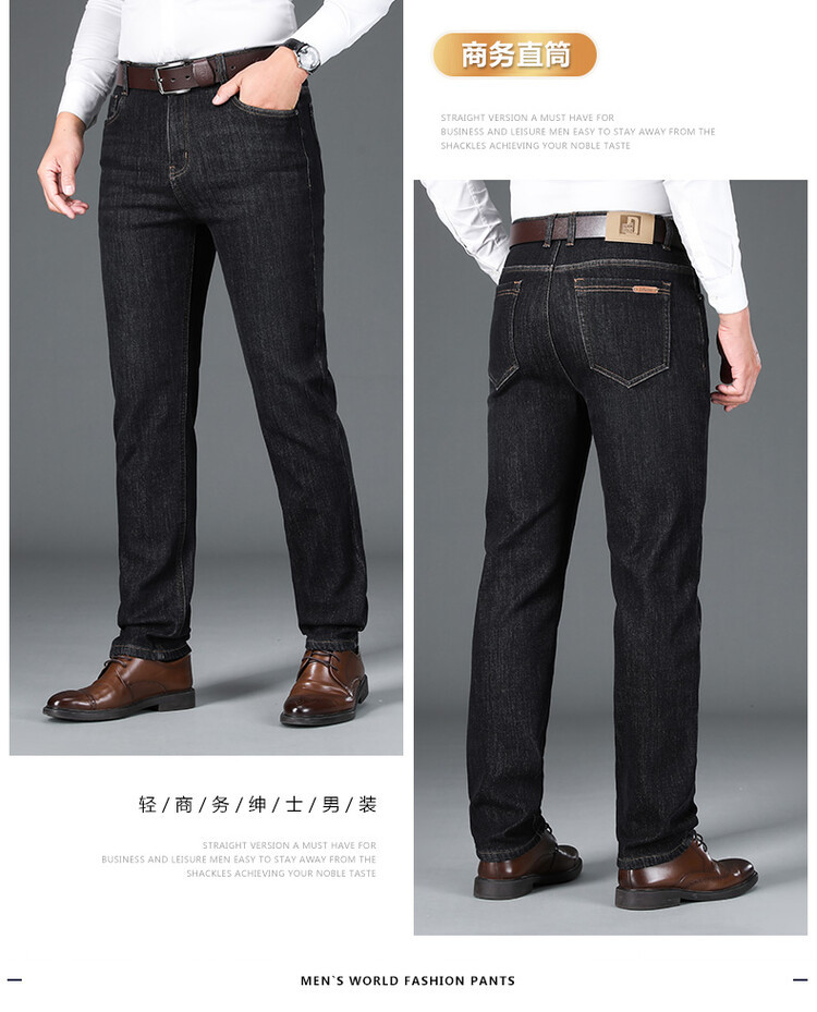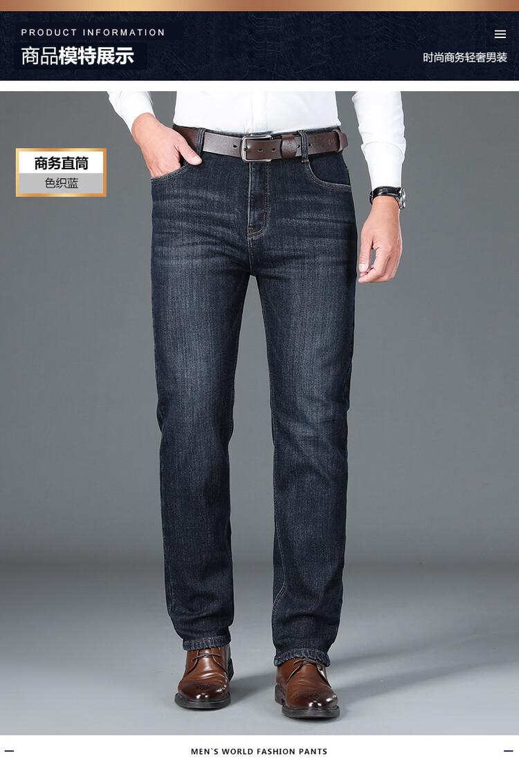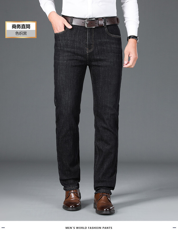 Бизнес-джинсы мужские зимние 2024 новые молодые и молодые плюшевые эластичные прямые брюки свободного отдыха