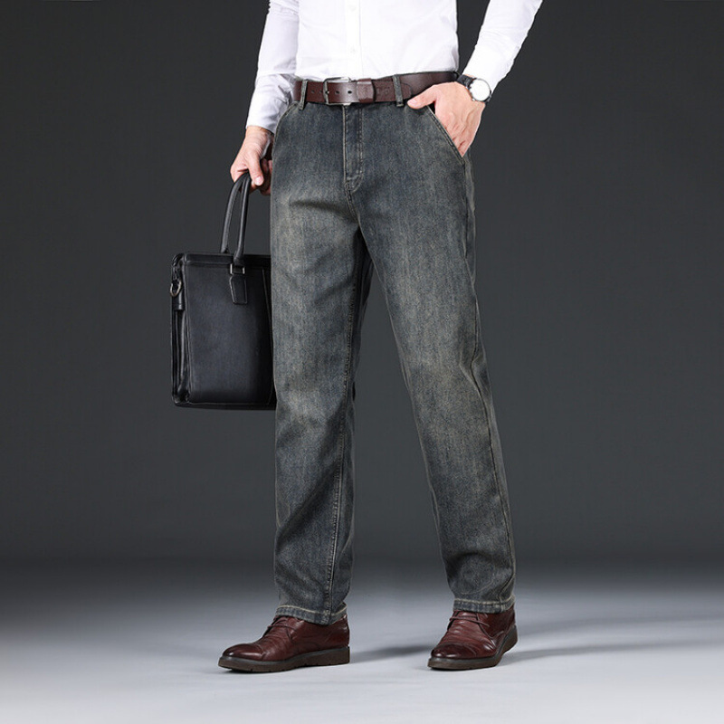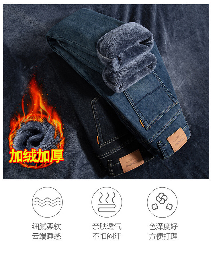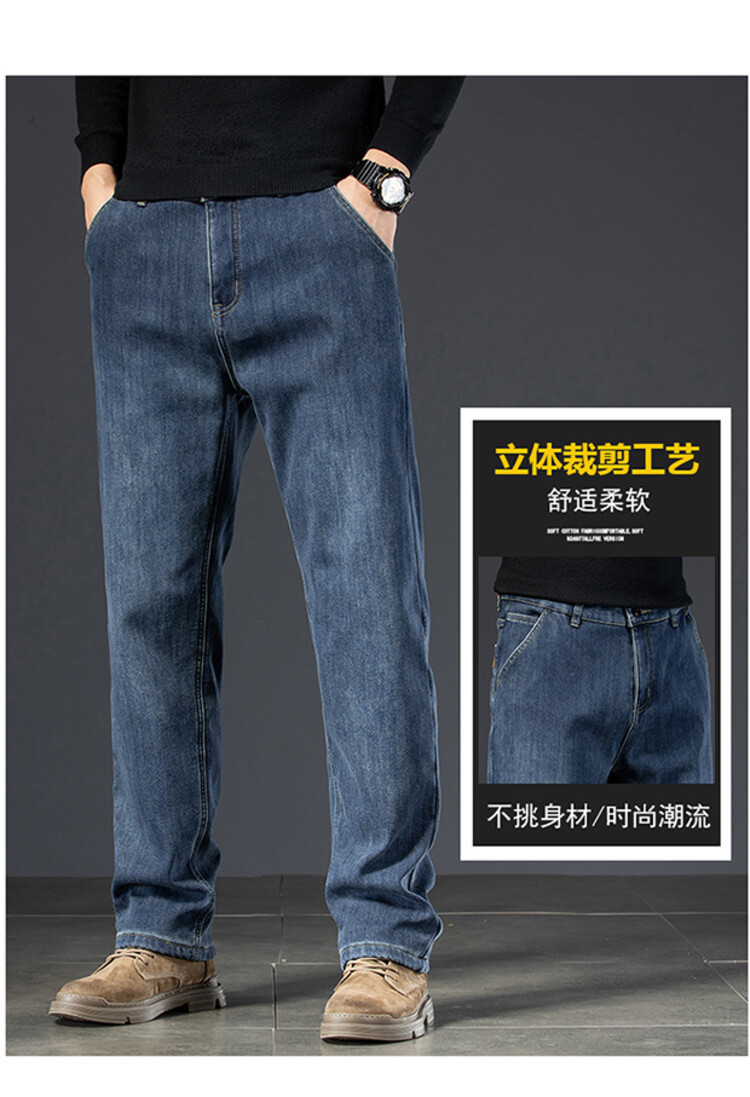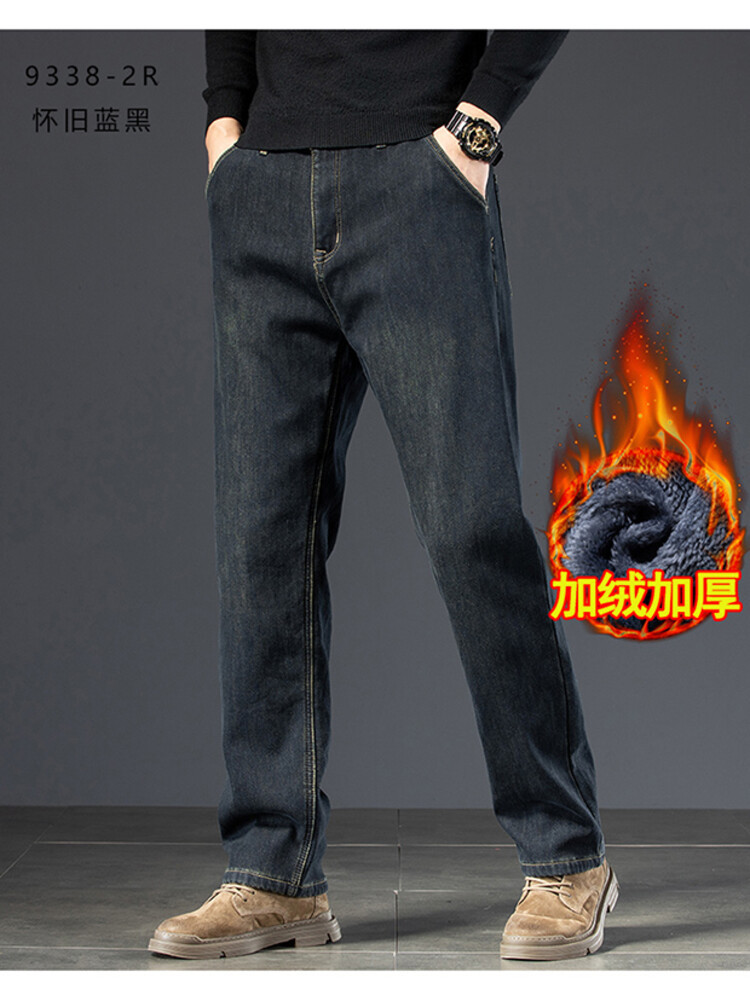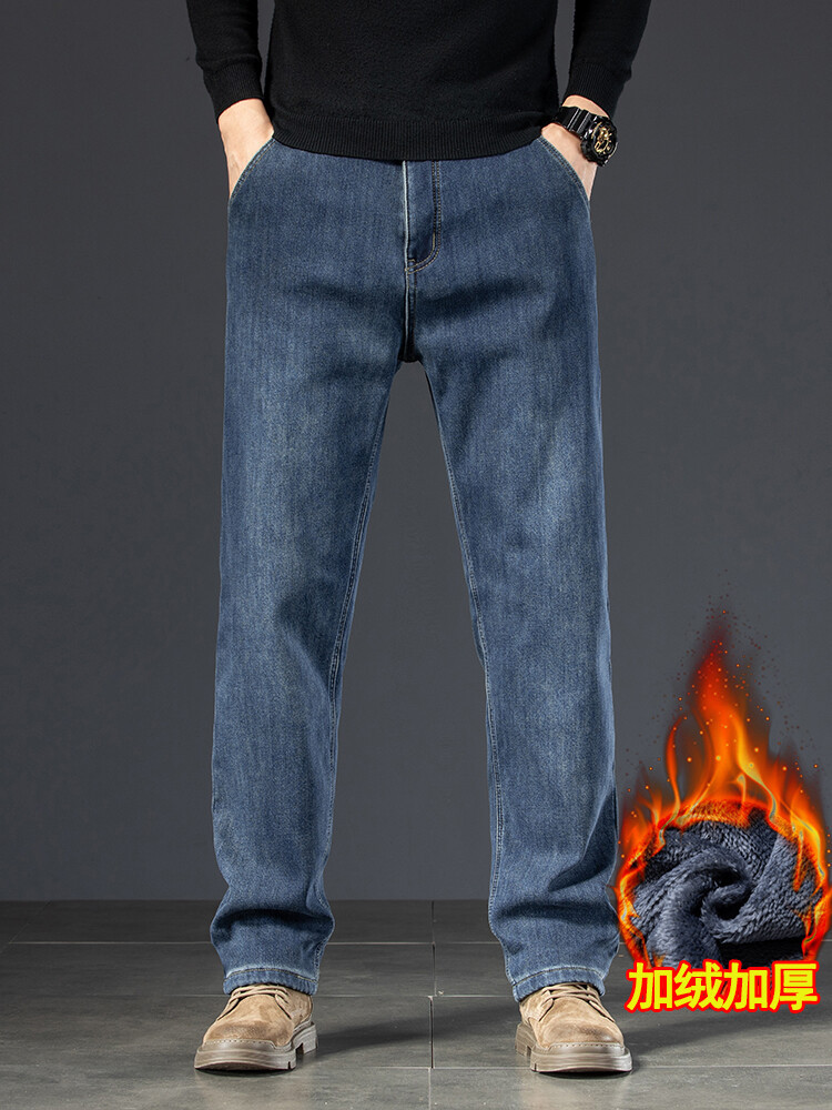 Высококачественные джинсы 2024 новые мужские осенние и зимние свободные прямые мужские брюки эластичные повседневные плюшевые толстые брюки Xintang