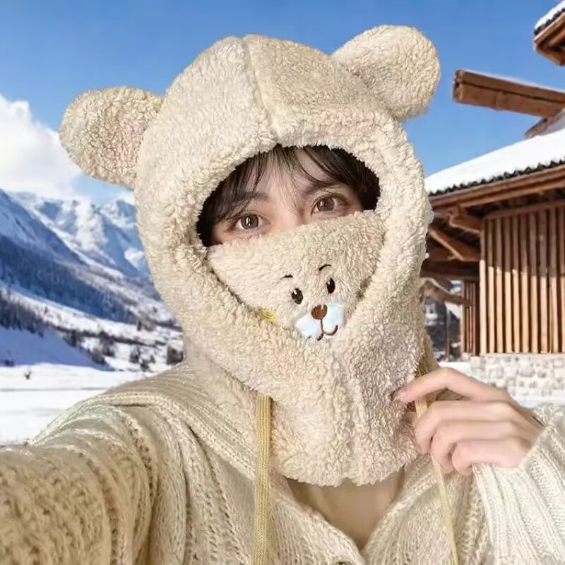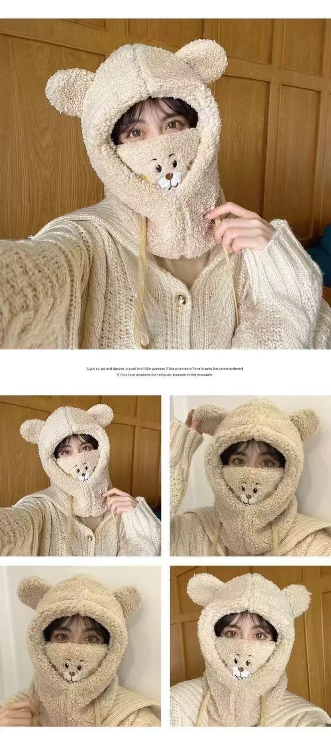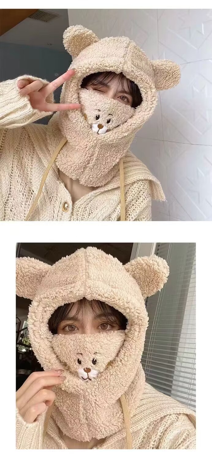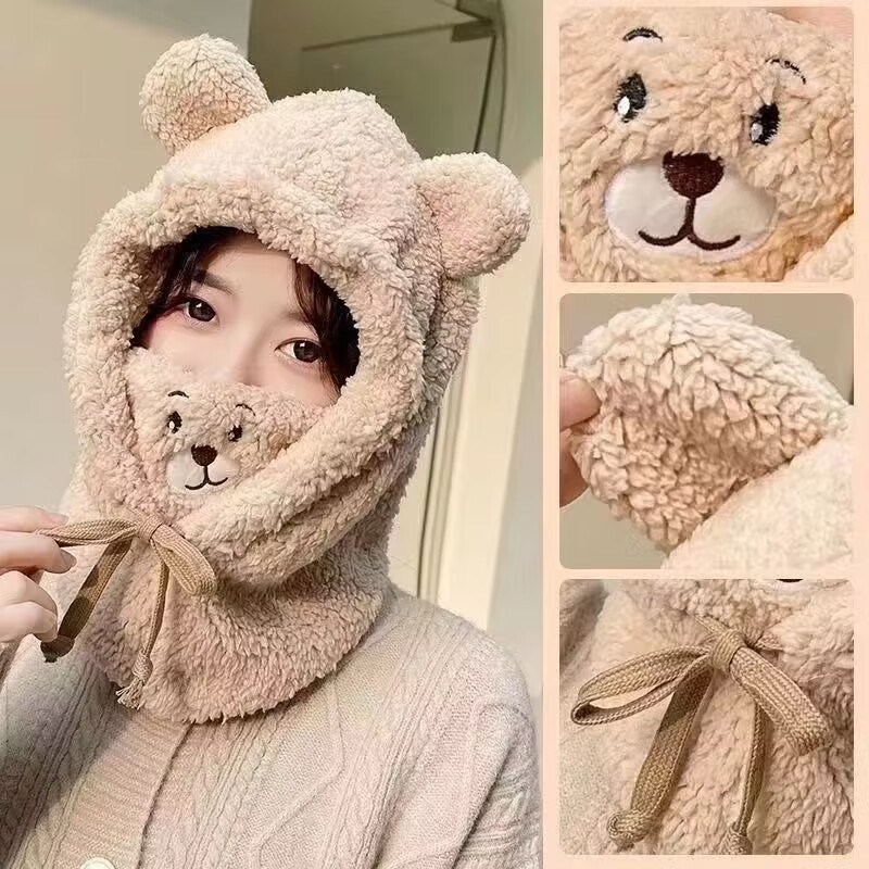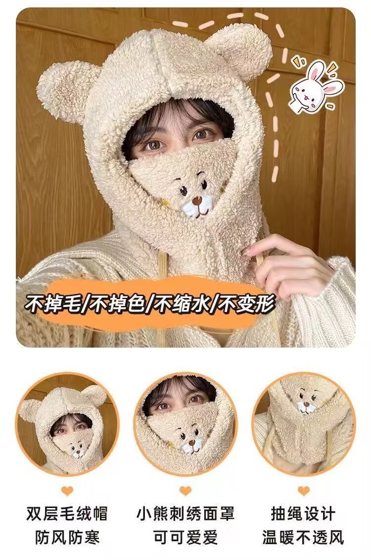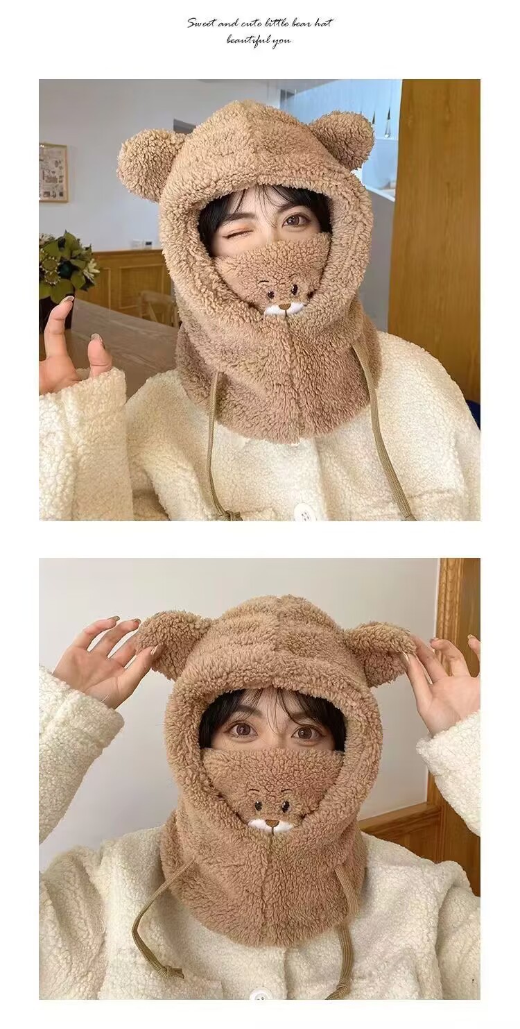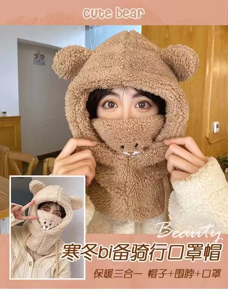 Маленькая шляпа медведя дети зимняя корейская версия милого дикого чехла для езды на велосипеде шарф теплая маска