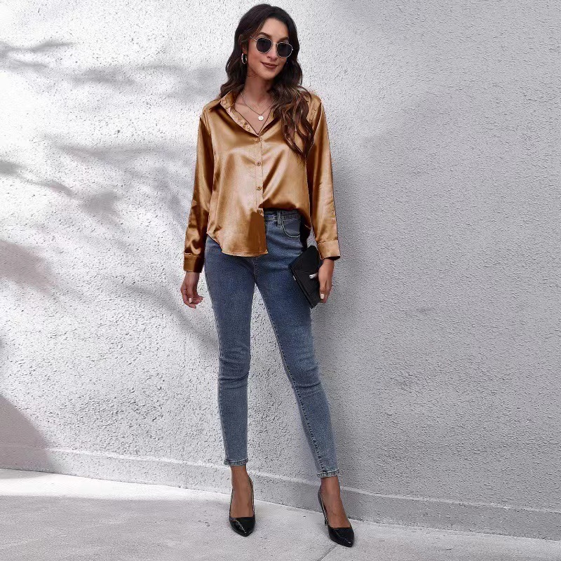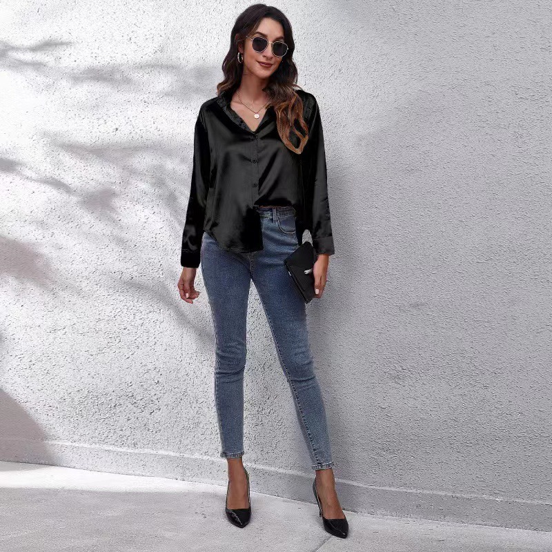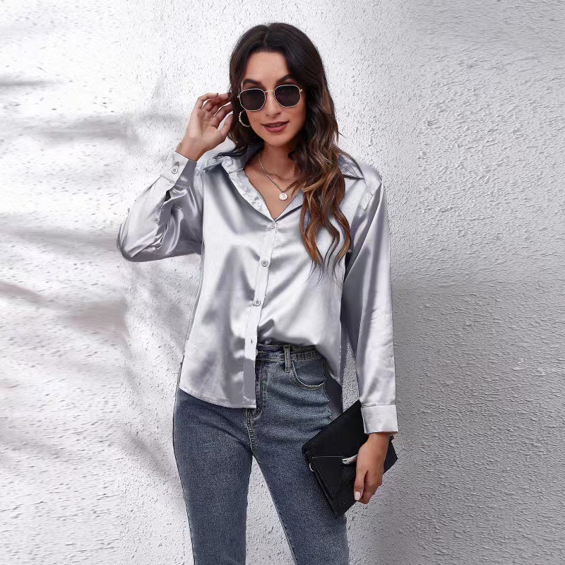 Рубашки женские, элитные, простые кардиганы с v-образным вырезом, свободные женские топы на пуговицах с длинными рукавами Amazon в наличии.