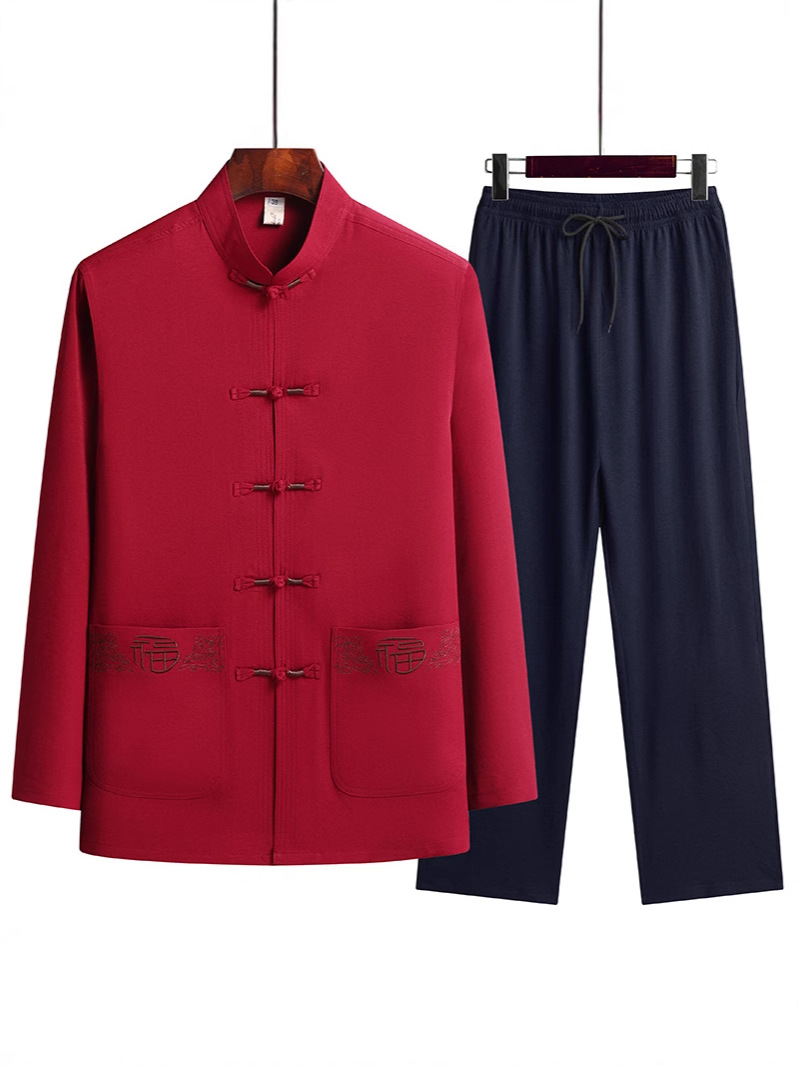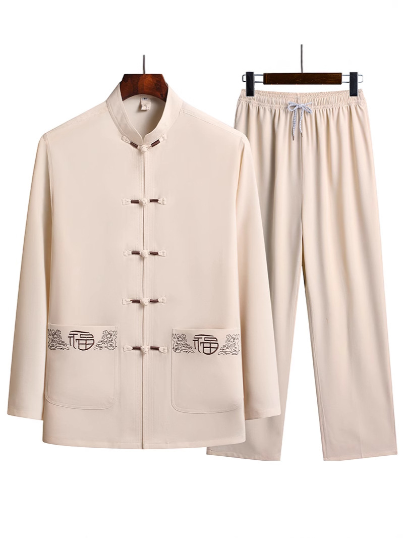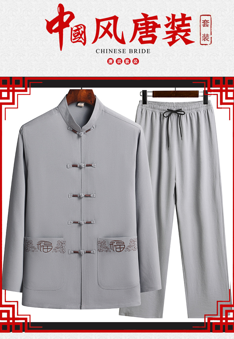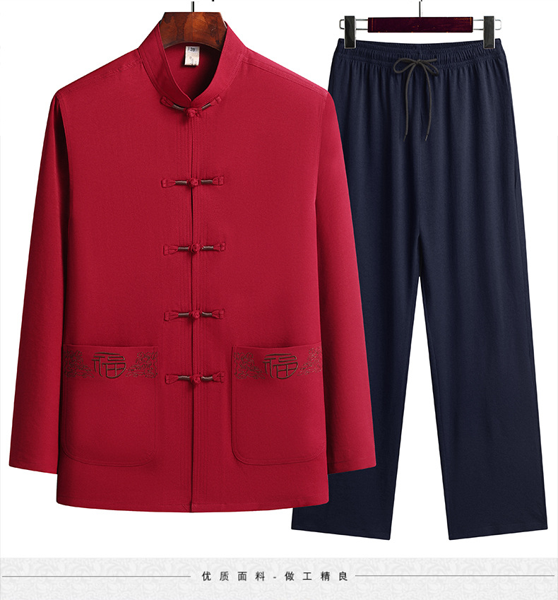 Средний и пожилой человек с длинными рукавами, костюм из двух частей, мужской весенний и осенний ретро, китайский папа, дедушка, китайский стиль