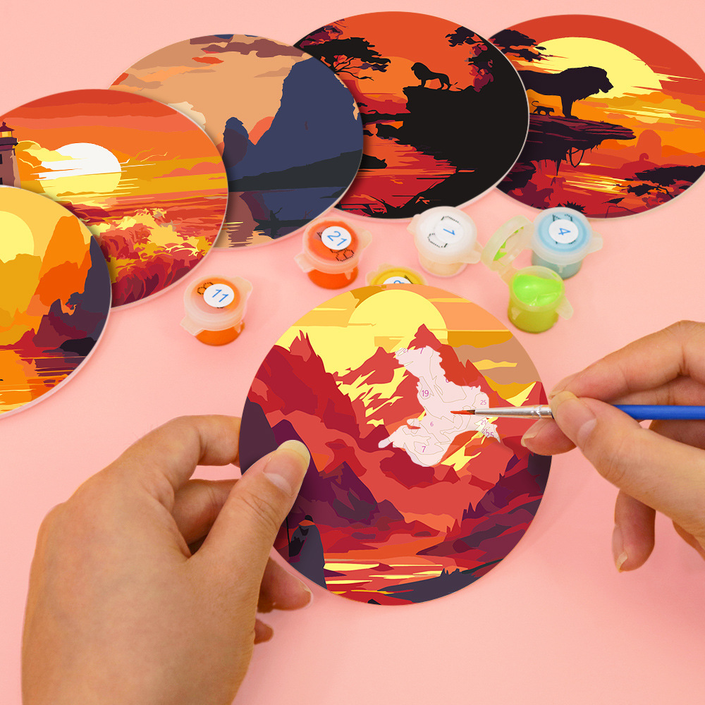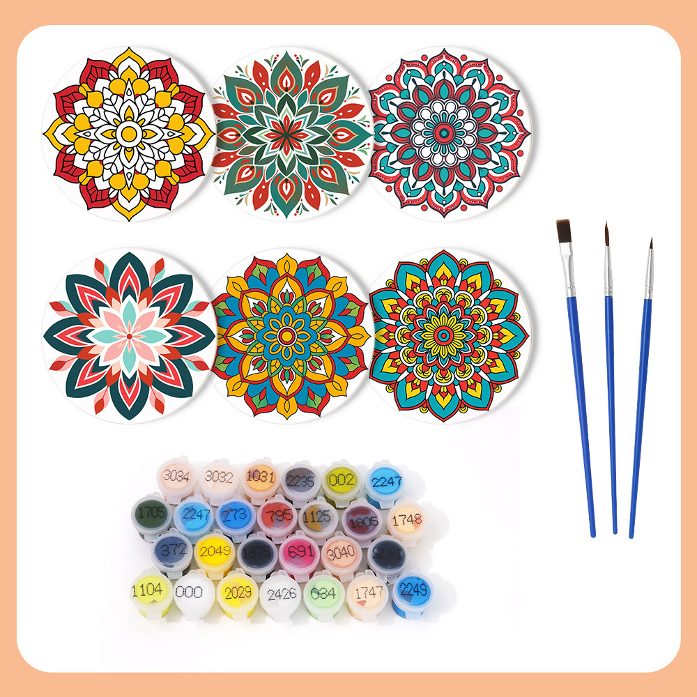 Новый подстаканник diy цифровая живопись маслом рождественская 6 комплектов рисованной масляной живописи трансграничная амазонка круглые коврики