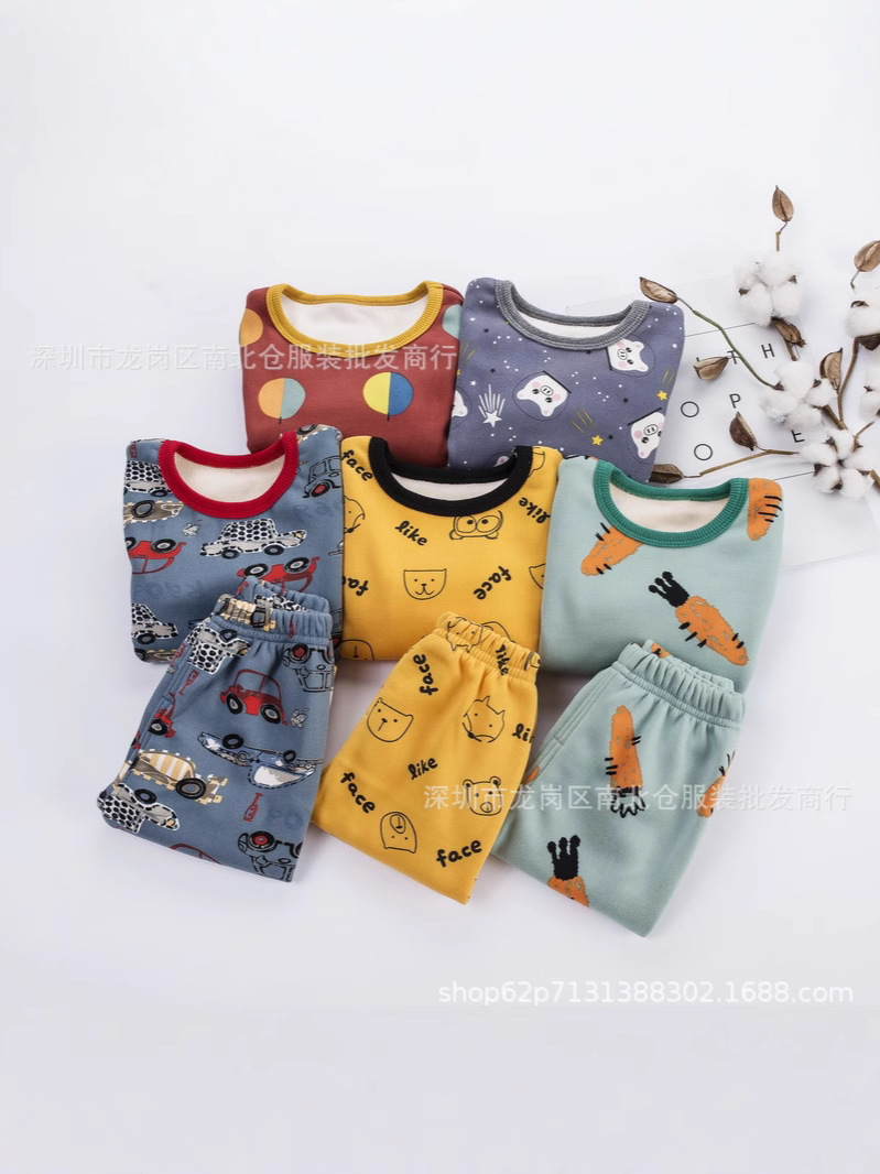 Ali 1688 хвостов оптом осенью и зимой плюс бархат утолщение, теплая детская одежда на складе