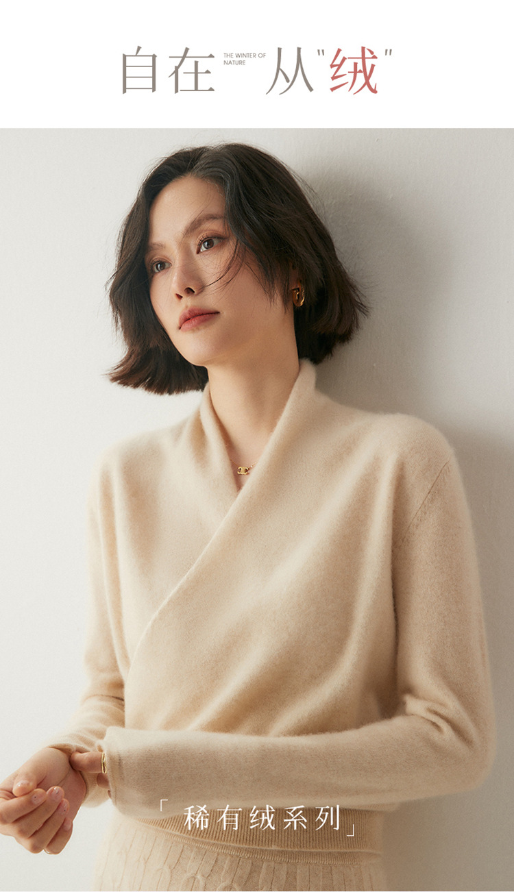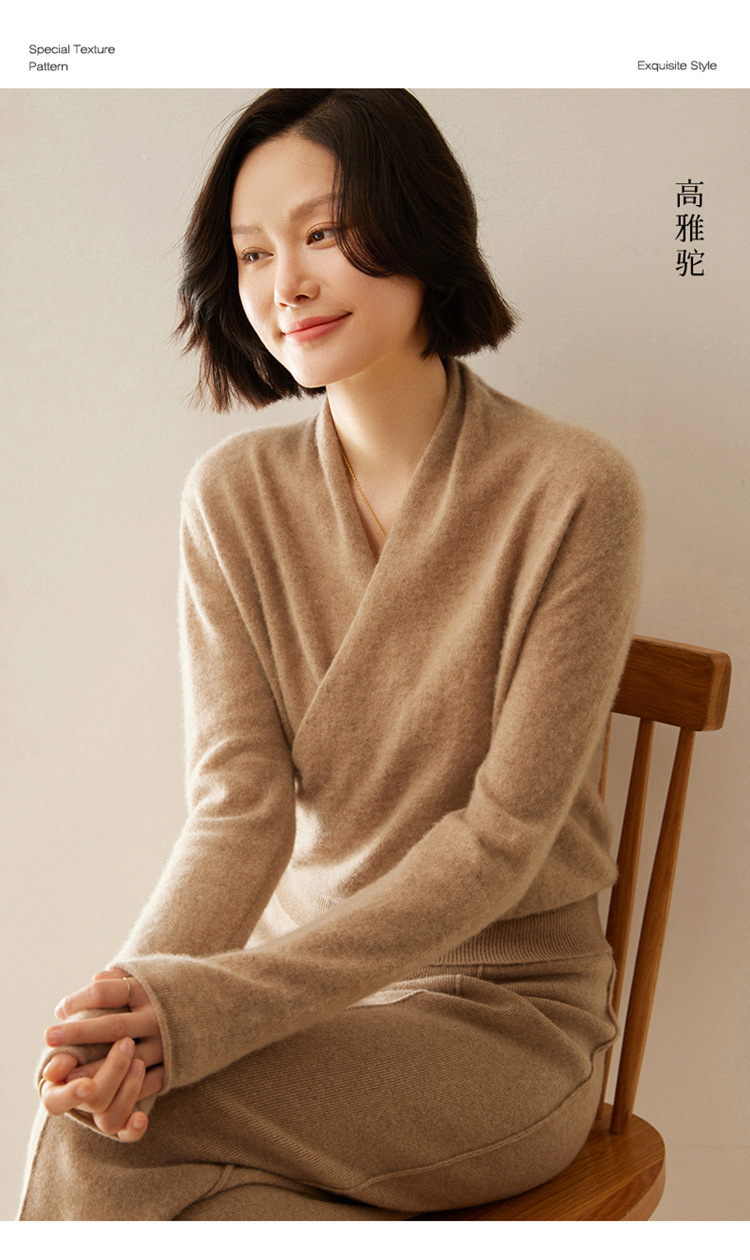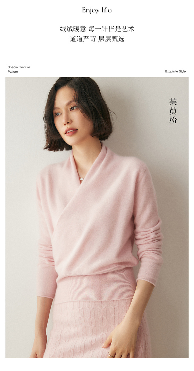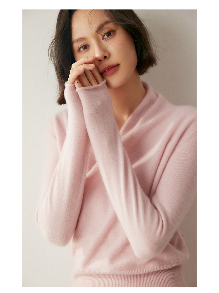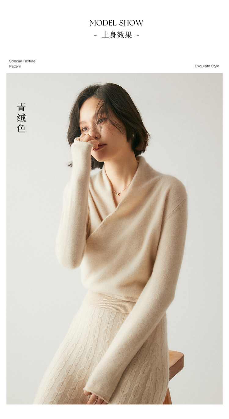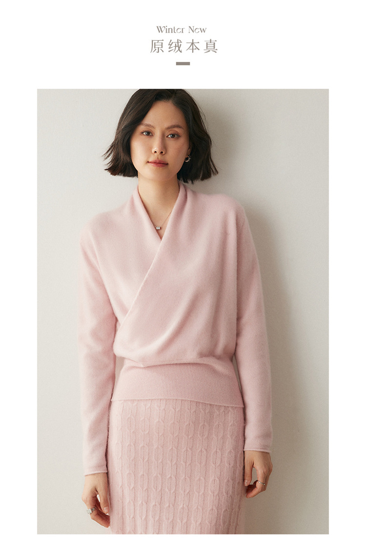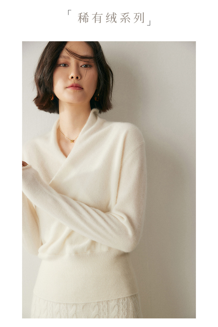 2024 осень и зима новый кашемировый вязаный нижний свитер женский длинный рукав крест V-образный вырез теплый и удобный мягкий и толстый