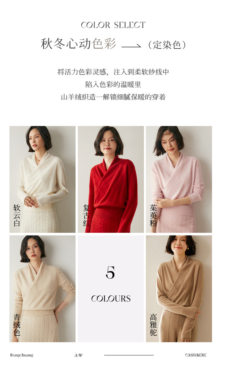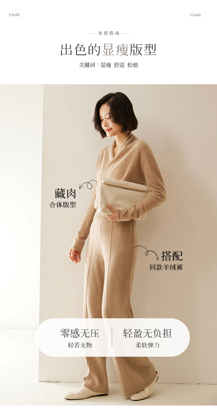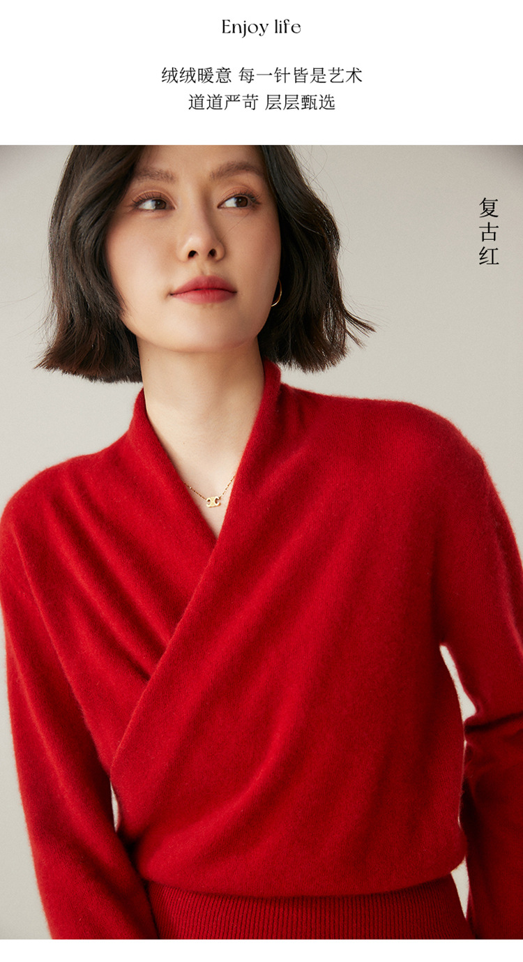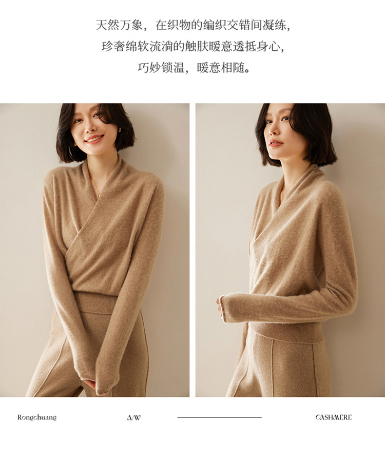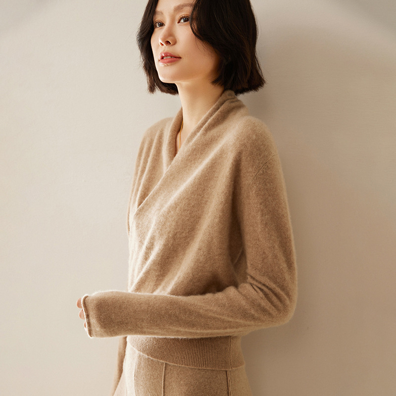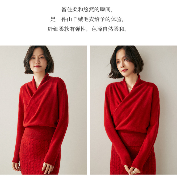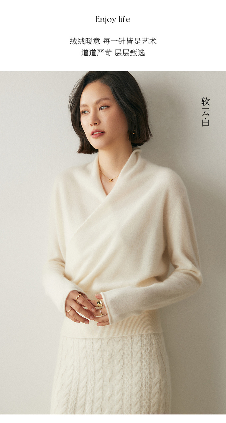 2024 осень и зима новый кашемировый вязаный нижний свитер женский длинный рукав крест V-образный вырез теплый и удобный мягкий и толстый