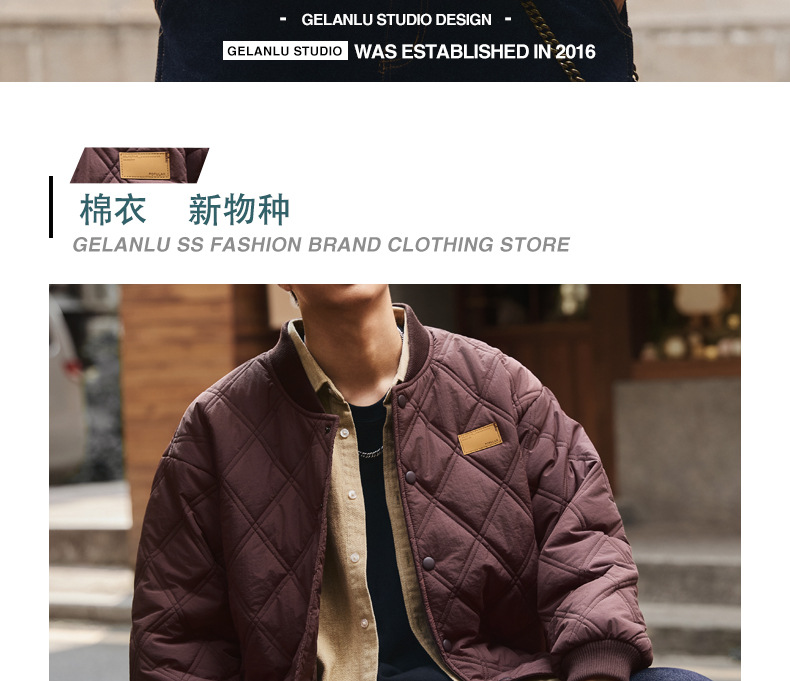 Ge Blue Deer Американский воздушный хлопок Тонкая теплая хлопчатобумажная одежда Мужская осень и зима прилив свободная повседневная хлопчатобумажная бейсбольная куртка