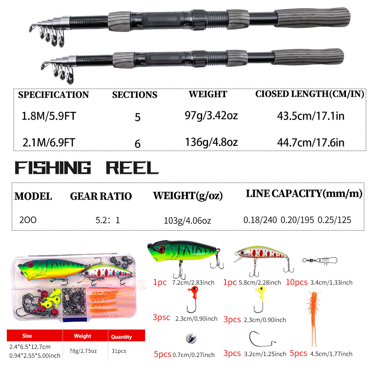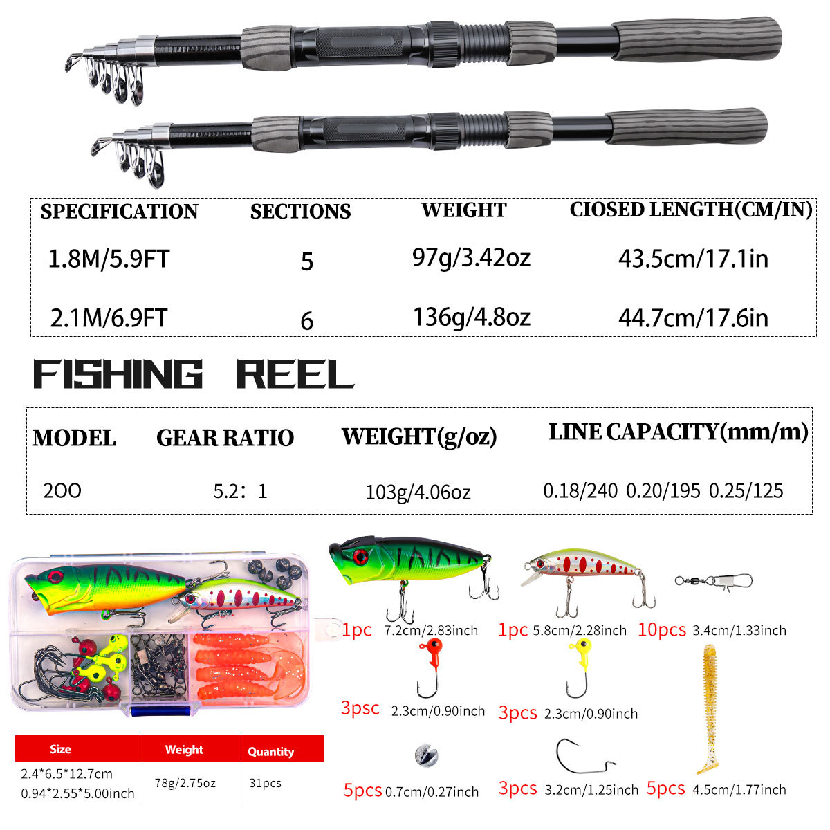 2.1米套装:532g
