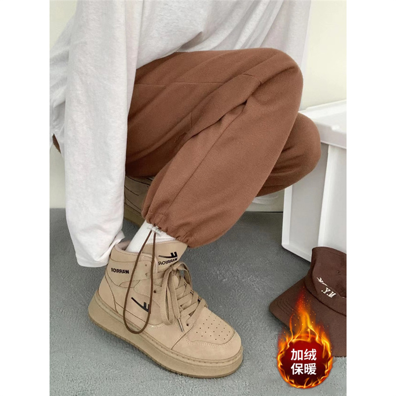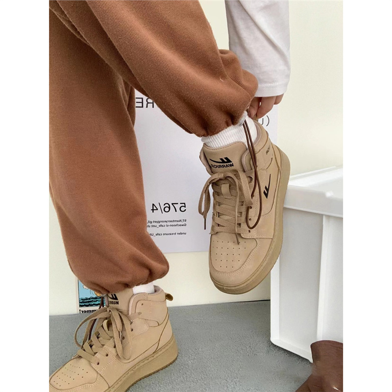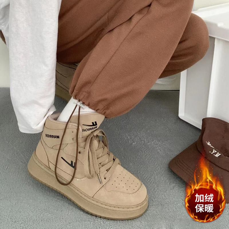 Подними пару женские туфли Пшеничный цвет плюс бархат высокие туфли женские 2024 осень и зима новые два хлопчатобумажные кроссовки спортивные туфли