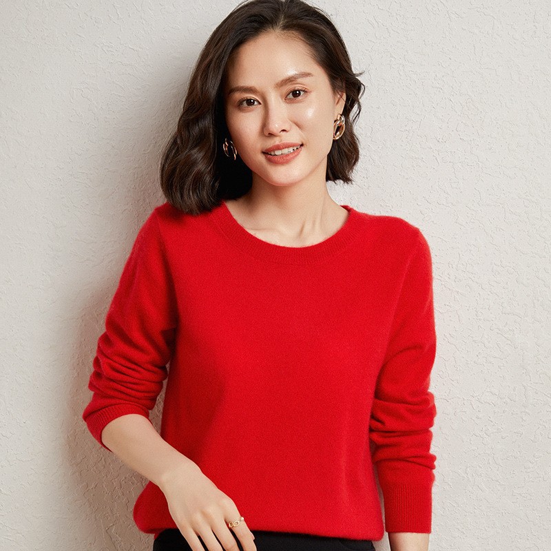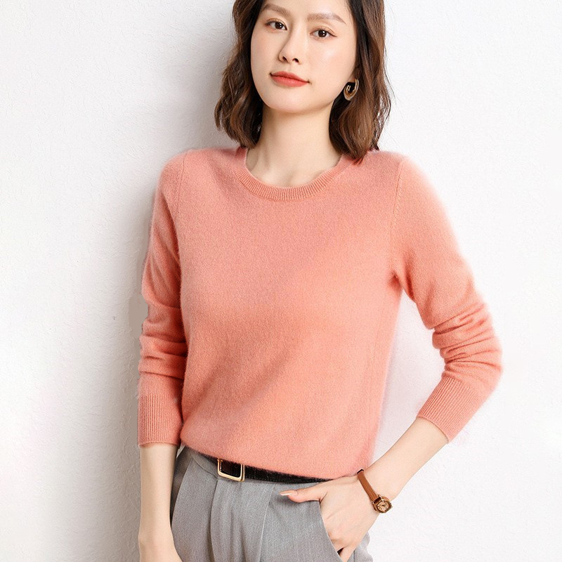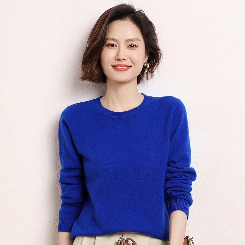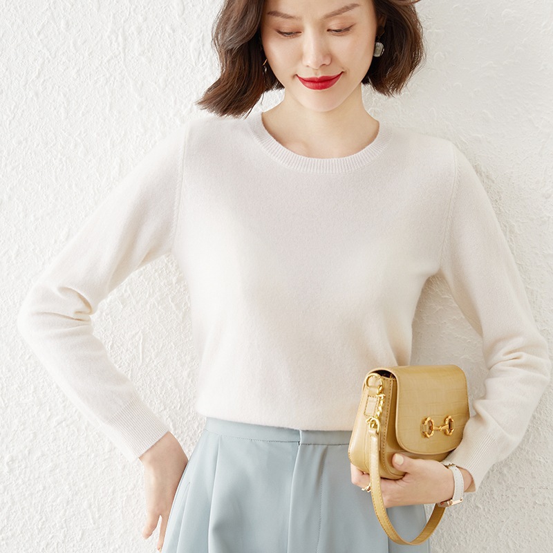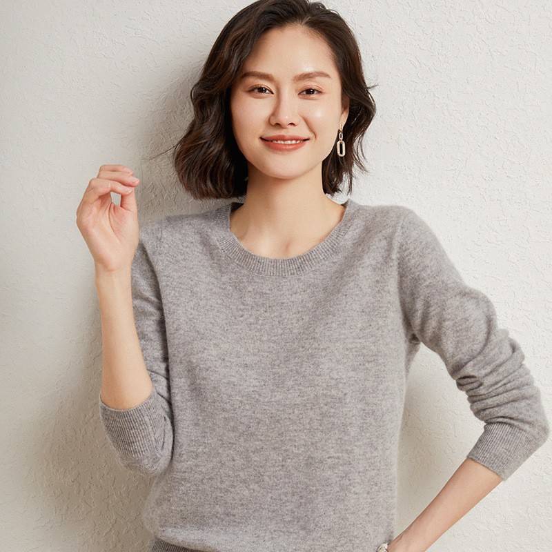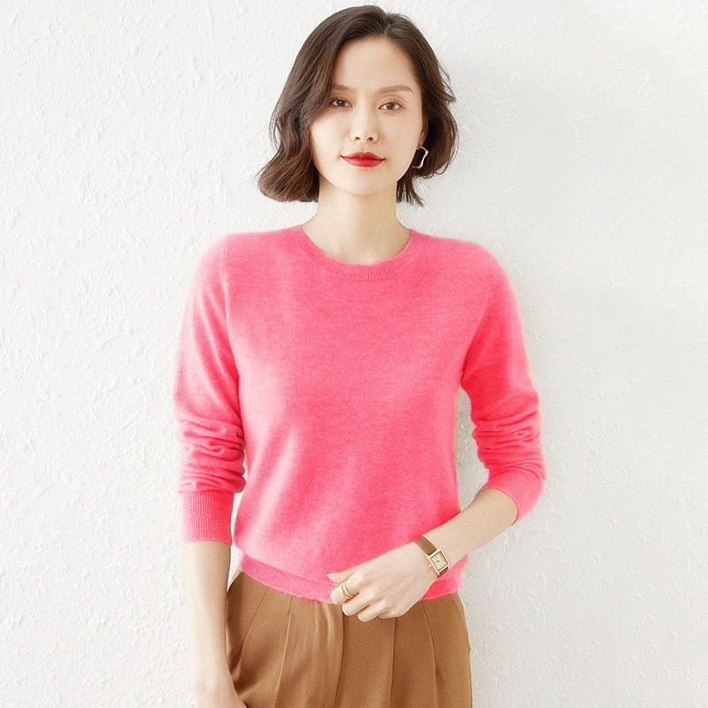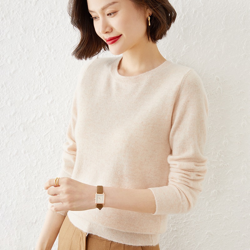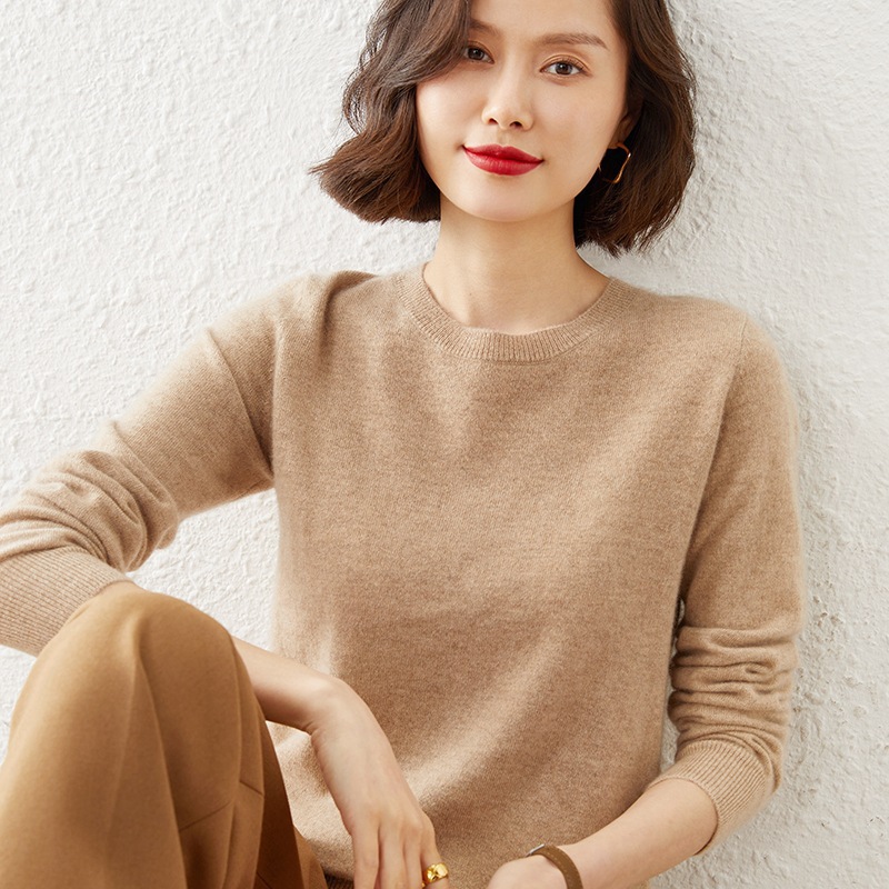 2024 Весенний и Осенний Новый Женский вязаный свитер с круглым вырезом Нижний свитер с длинными рукавами свитер женский оптовый волос