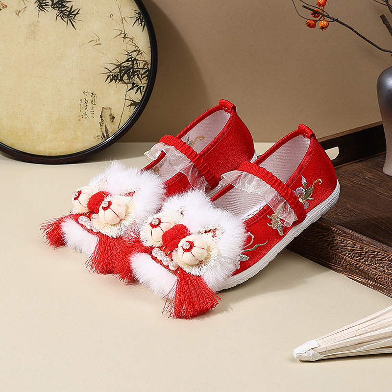 Осенние и зимние бархатные туфли для девочек Hanfu вышитые туфли из тигра ручной работы