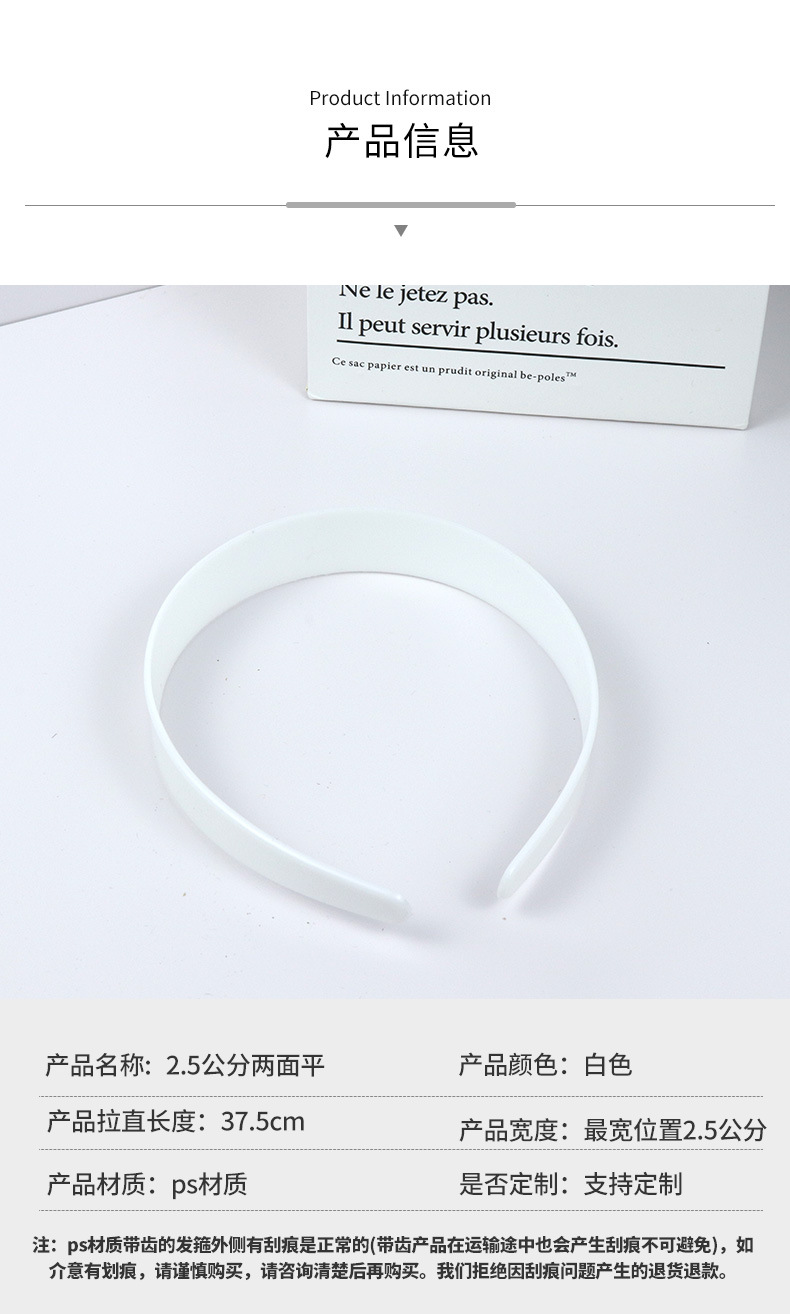 2.5CM беззубый плоский обруч для волос DIY пластиковый обруч для головы белый полуфабрикатный ювелирный аксессуар 2.5 двухсторонний плоский 37,5