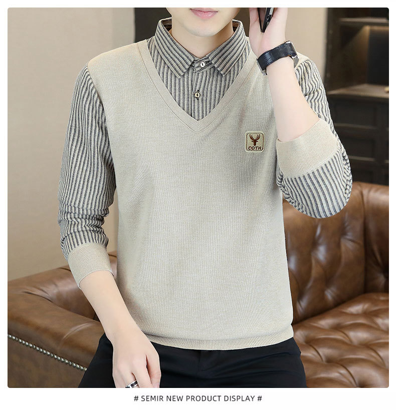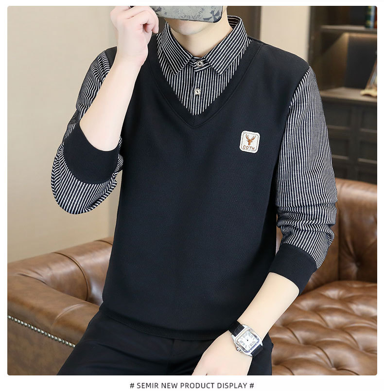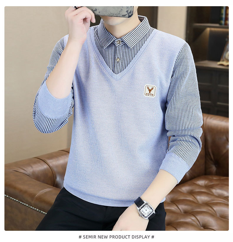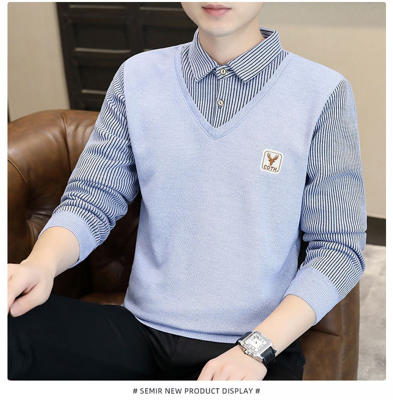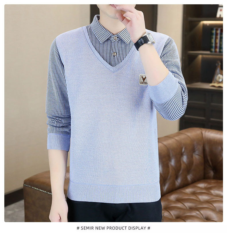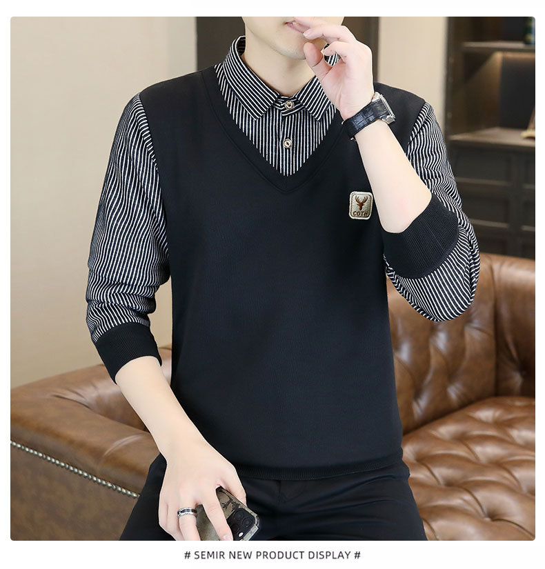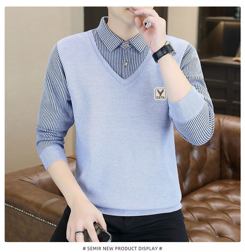 Поддельные два трикотажа мужской бизнес-повседневный дикий рубашка с воротником нижней рубашки свитер