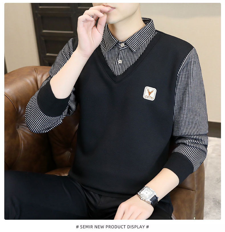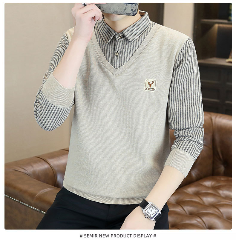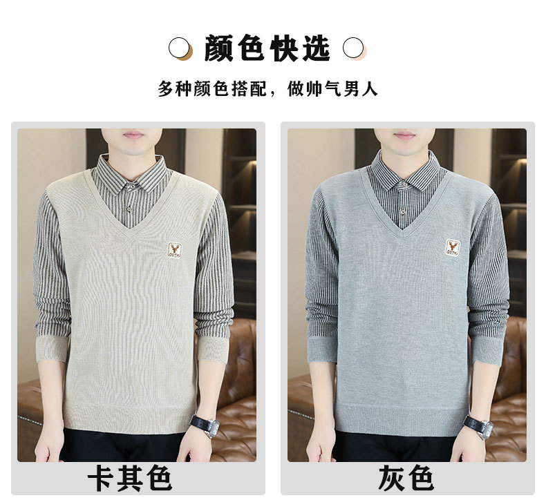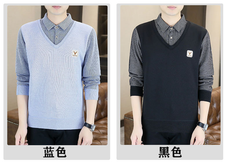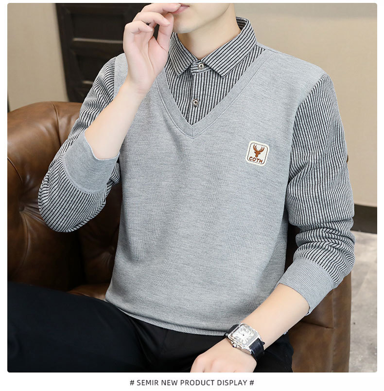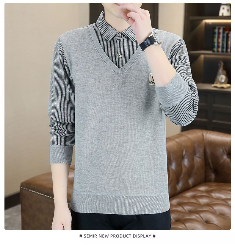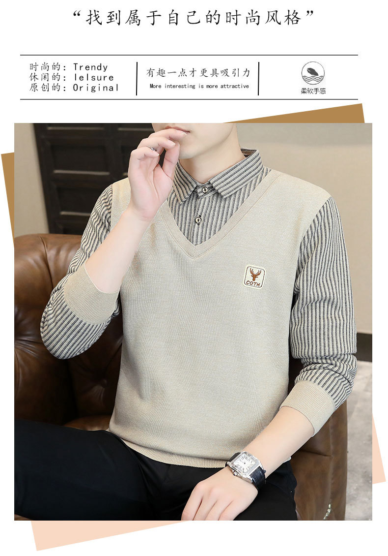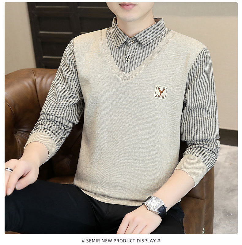 Поддельные два трикотажа мужской бизнес-повседневный дикий рубашка с воротником нижней рубашки свитер