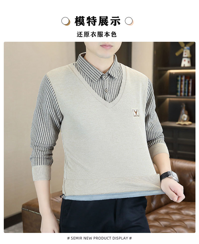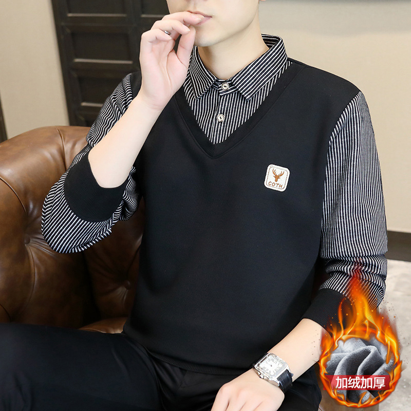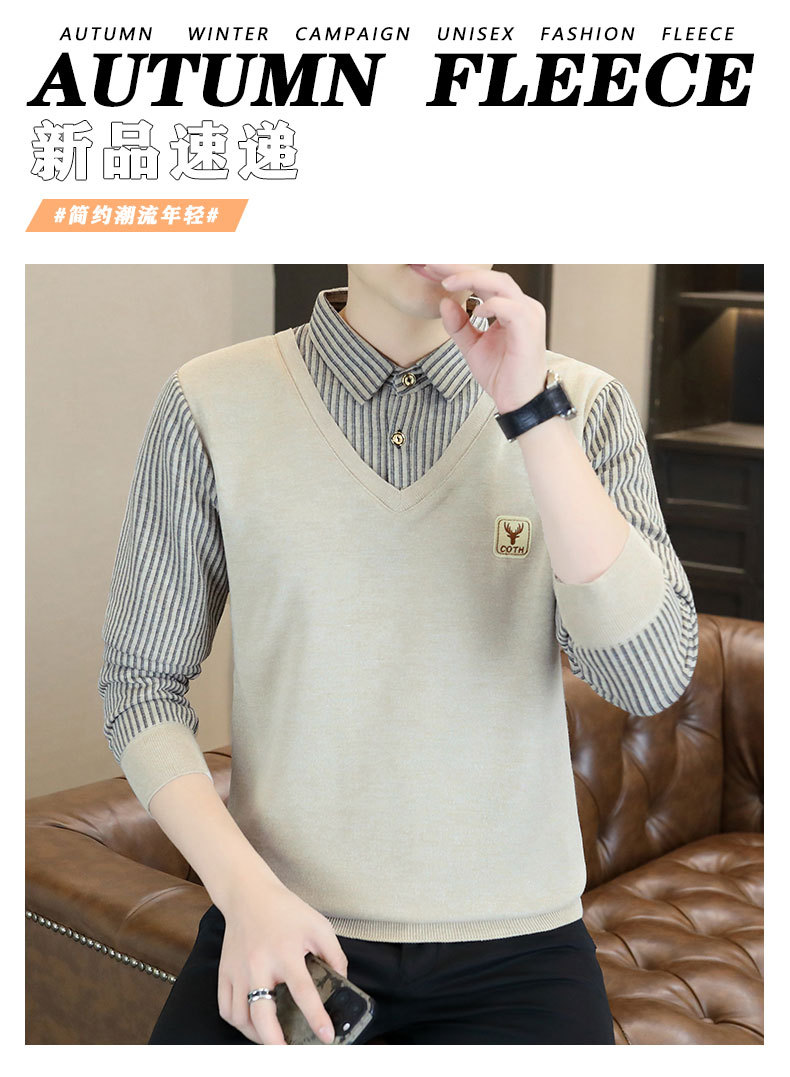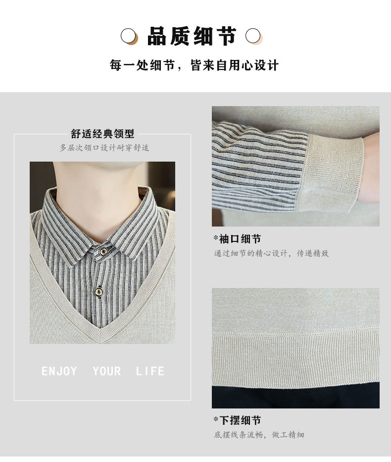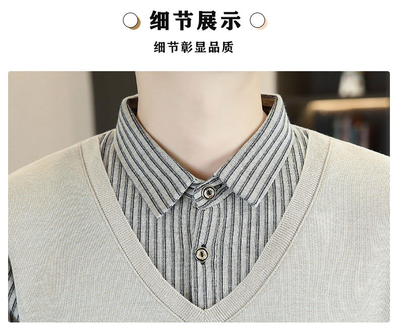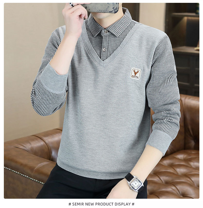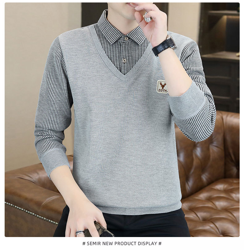 Поддельные два трикотажа мужской бизнес-повседневный дикий рубашка с воротником нижней рубашки свитер
