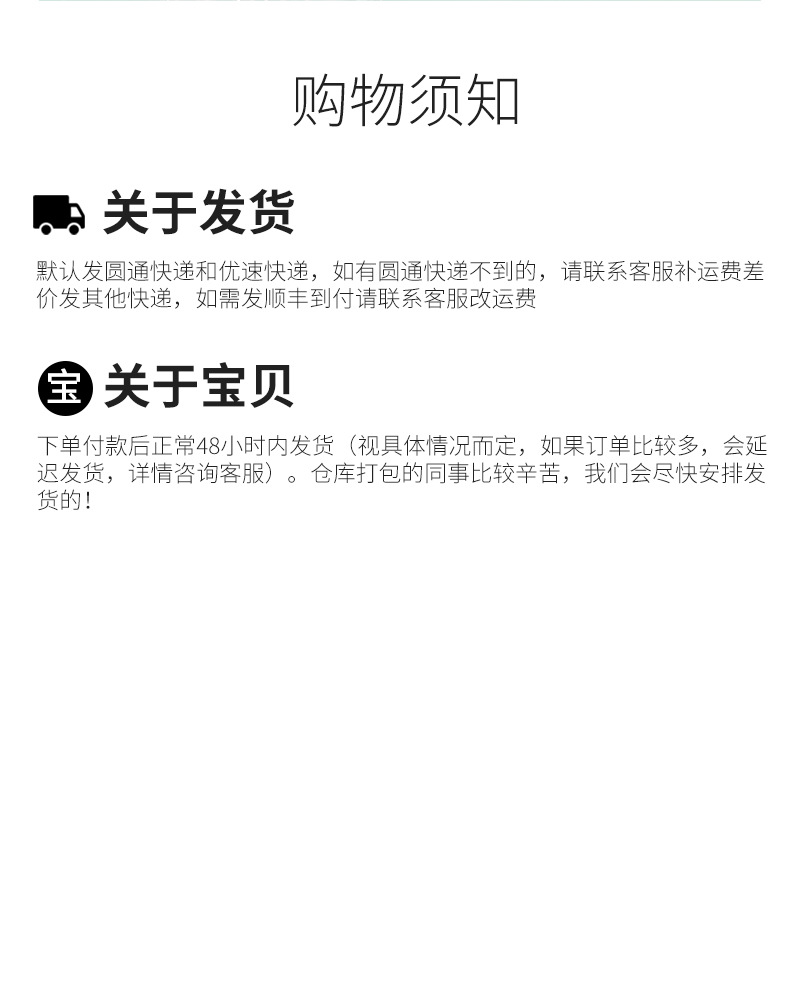 (六) 关于快递,一律发本店默认快递,不到的联系客户发其他快递。发其他快递需要补差价。