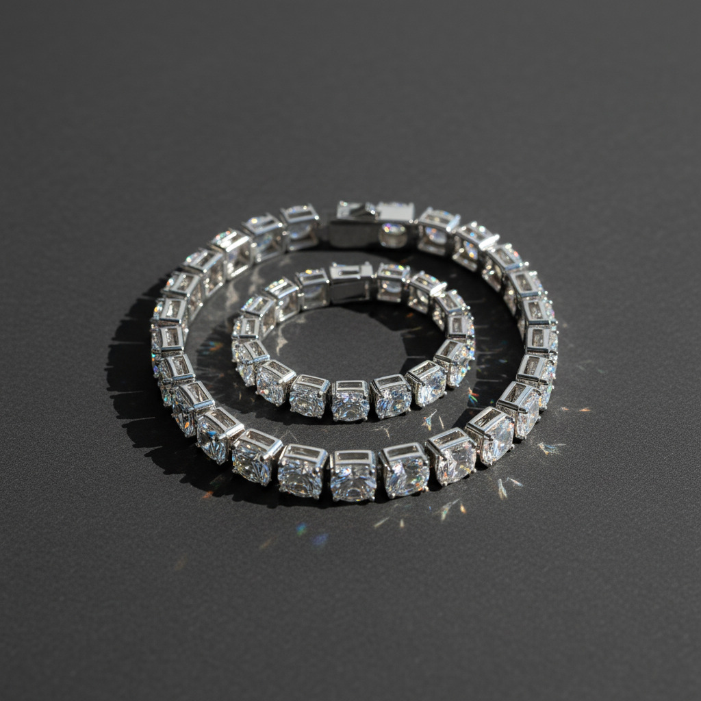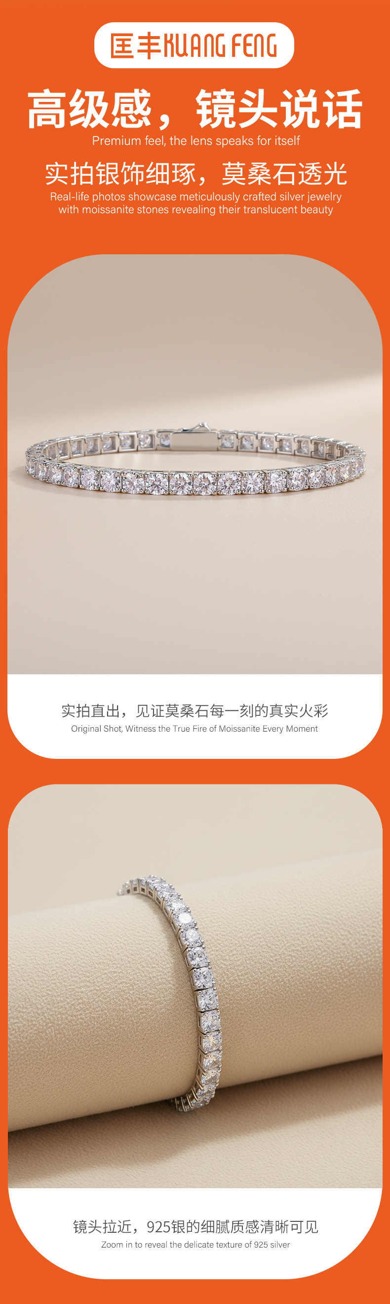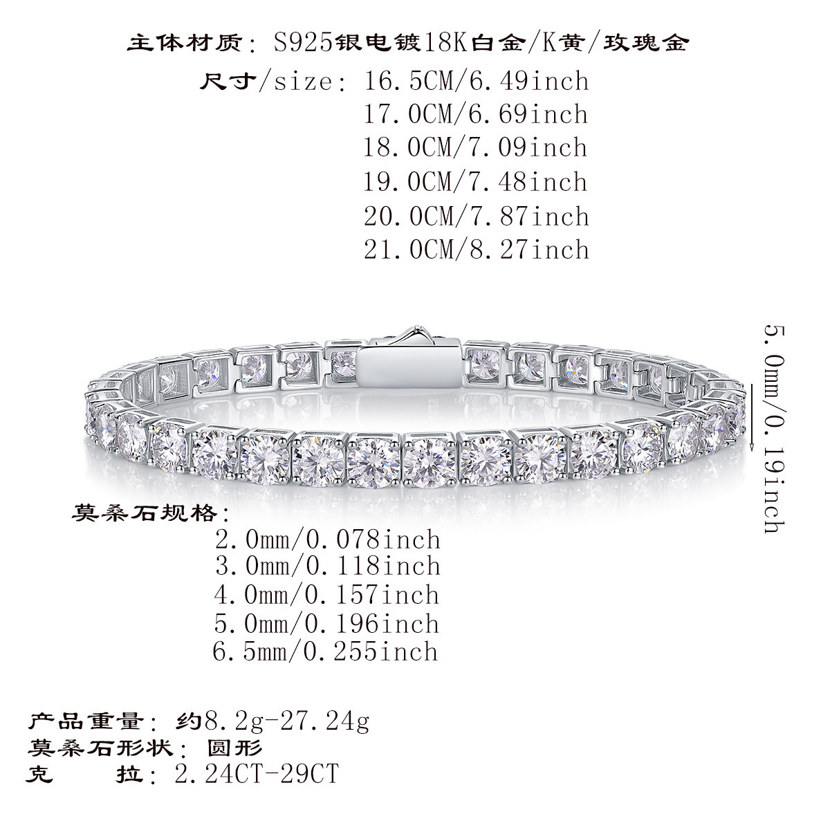 Браслет-теннис из серебра 925 пробы (полностью из муассанита) - унисекс; Теннисный браслет из серебра S925 + белая подарочная коробка + сертификат GRA; Теннисный браслет из серебра S925 + подарочная коробка с подсветкой + сертификат GRA + сертификат национальной инспекции