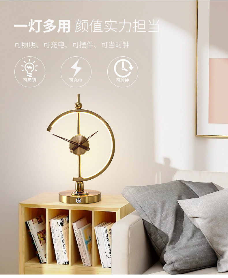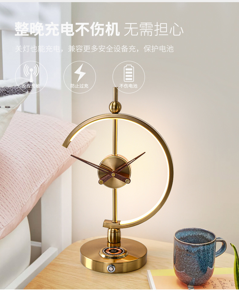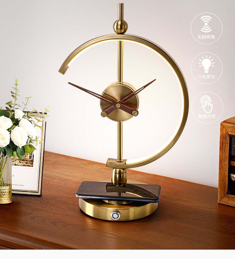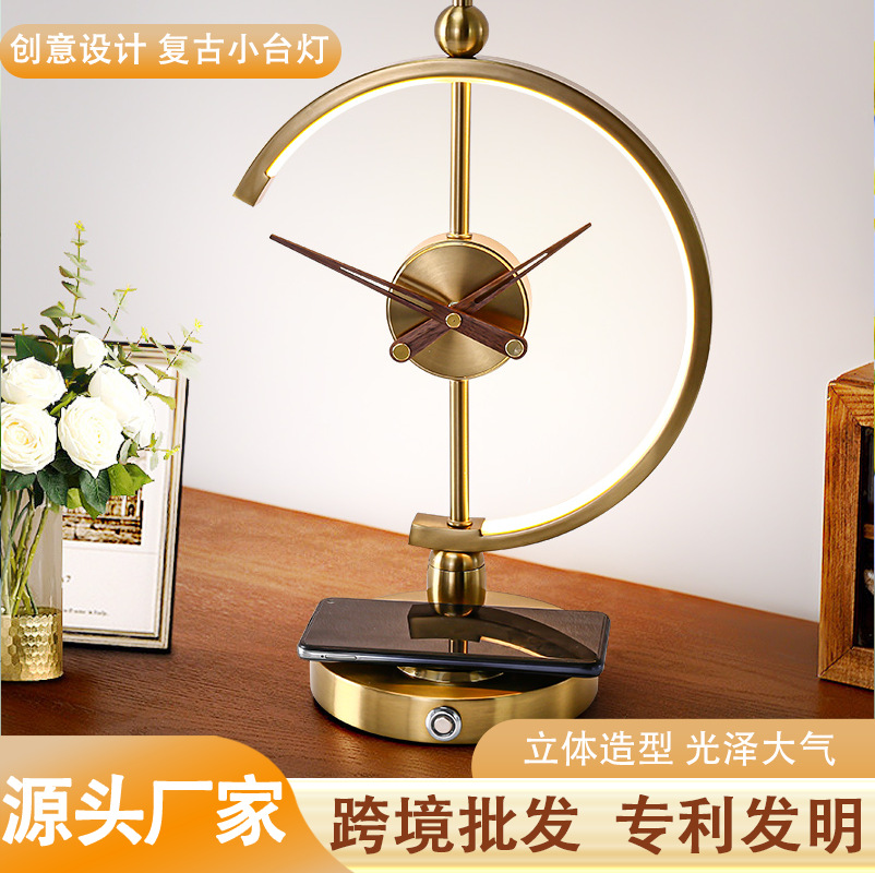 Трансграничные ретро часы настольная лампа беспроводная зарядка современная минималистичная креативная сенсорная спальня прикроватный свет ночная лампа