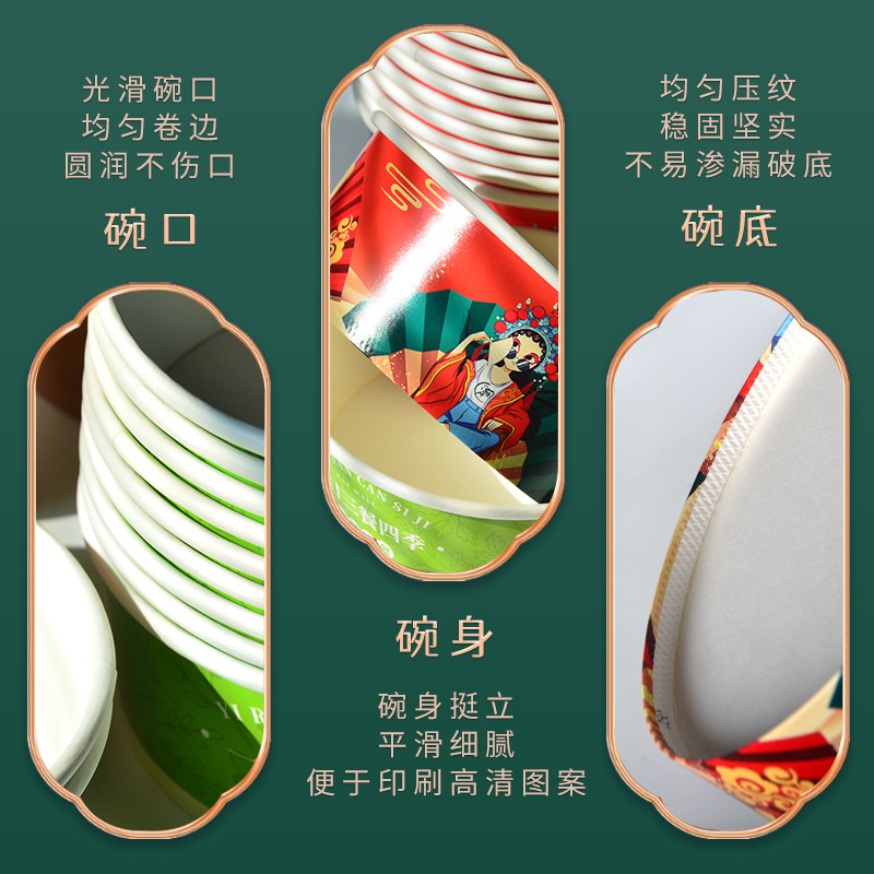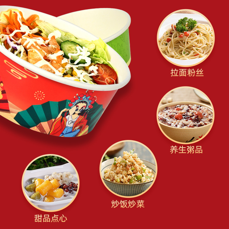 Одноразовая бумажная миска с крышкой, утолщенная круглая миска для салата с холодной лапшой на гриле, шифоновый торт на вынос, упаковка для лапши быстрого приготовления, миска для фаст-фуда